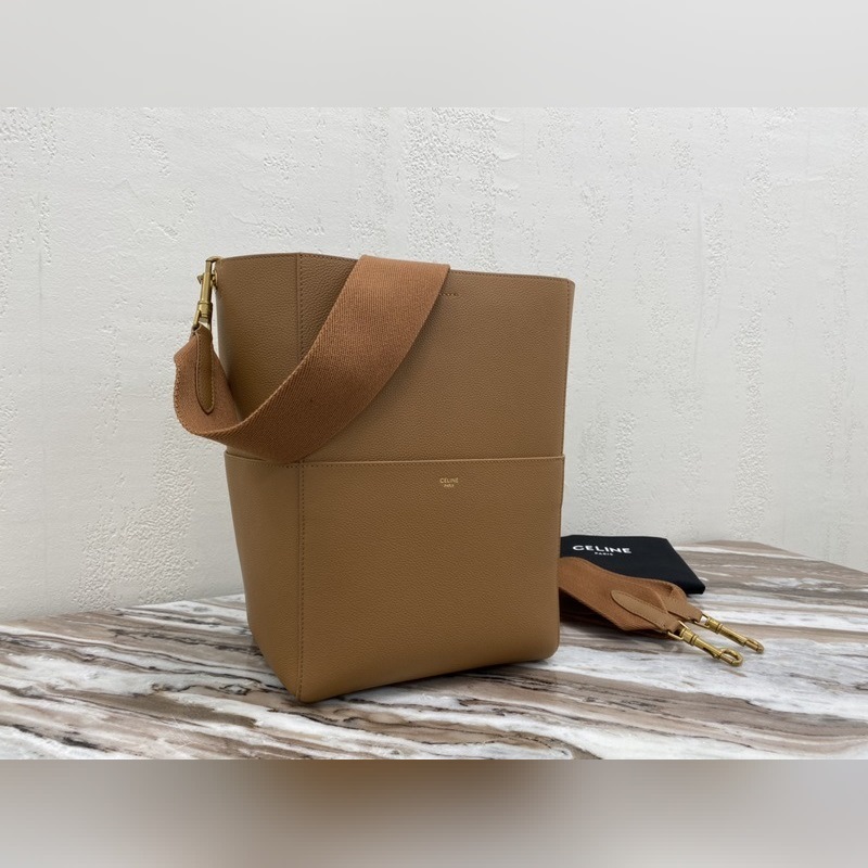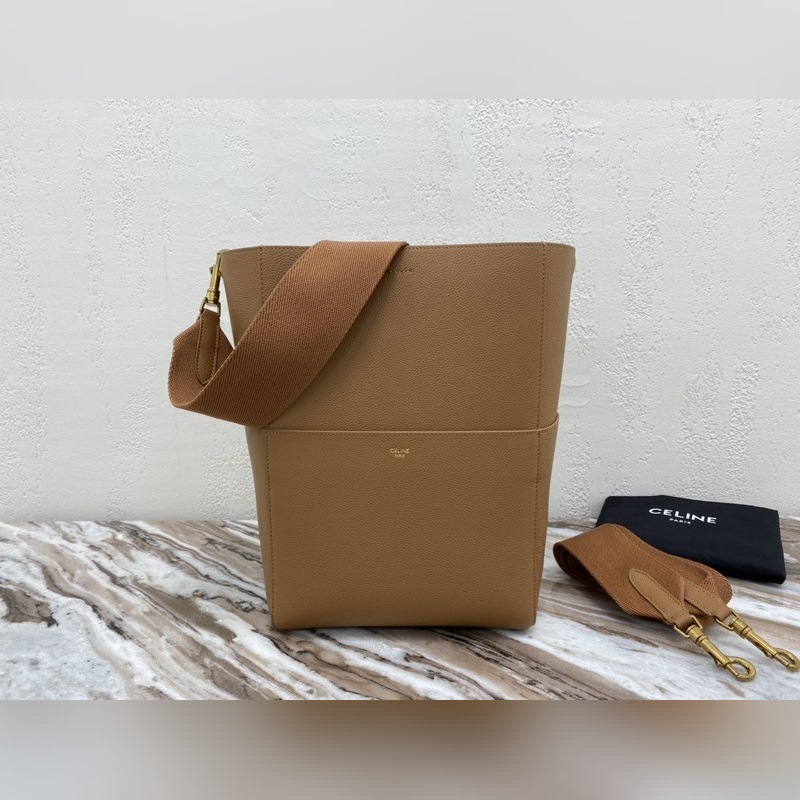 CELINE SEAU SANGLE 그레인 송아지 가죽 숄더백 모델: 18
