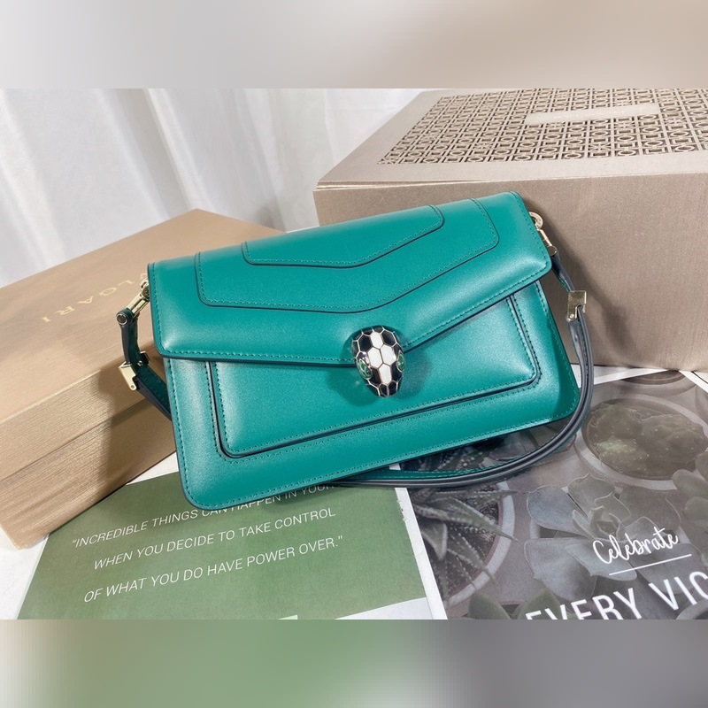 불가리 세르펜티 포에버 이스트-웨스트 시리즈 숄더백 292104950 검은색 송아지 가죽으로 제작된 이 제품은 실용적인 가죽 어깨끈이 달려 있으며 고전적인 뱀 머리 자석 단추로 장식되어 있습니다. 이 제품은 다용도로 사용할 수 있으며 일상적인 착용에 적합합니다. 이 제품은 하나의 수납 공간 앞쪽 포켓 뒷쪽 패치 포켓 내부 퀼팅 포켓 카드 슬롯 3개 한쪽 면에 화장품 거울 뒷면에 불가리 금속 로고가 있습니다. 크기 22 X 15 X 4.5cm