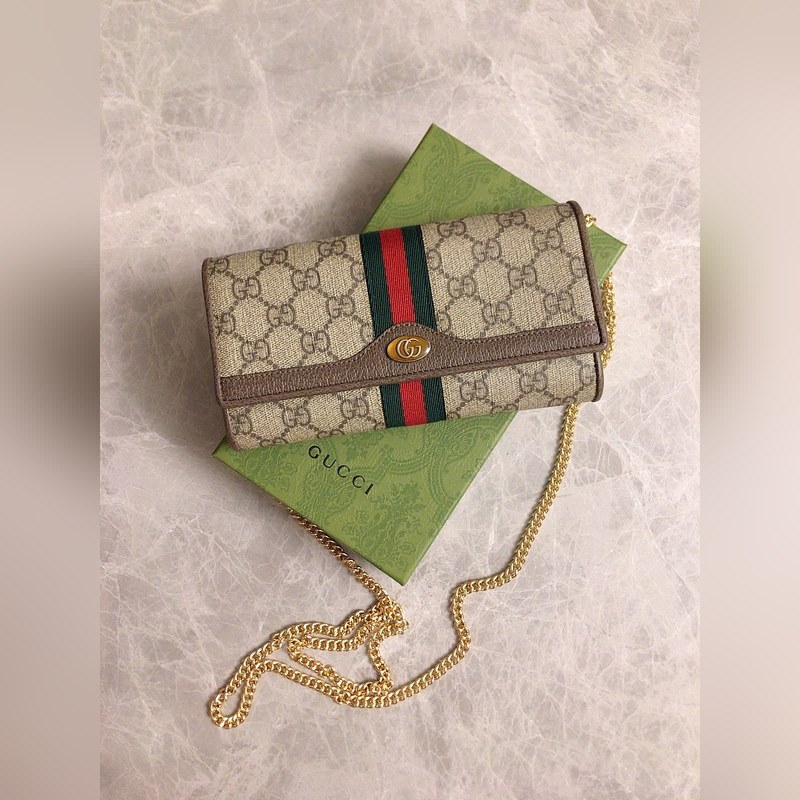 초봄 신상 - 오히아 시리즈 고급 캔버스 체인백 크로스바디백 수입 송아지 가죽과 상징적인 직조 리본 상징적인 수이 라운드 에나멜 디테일 - 체인 내부에 거울이 있어 분리 가능(이중 사용 가능) / 지갑 크로스바디백 모델: 546592 색상: 브라운 크기: W19 × H10 × D3cm
