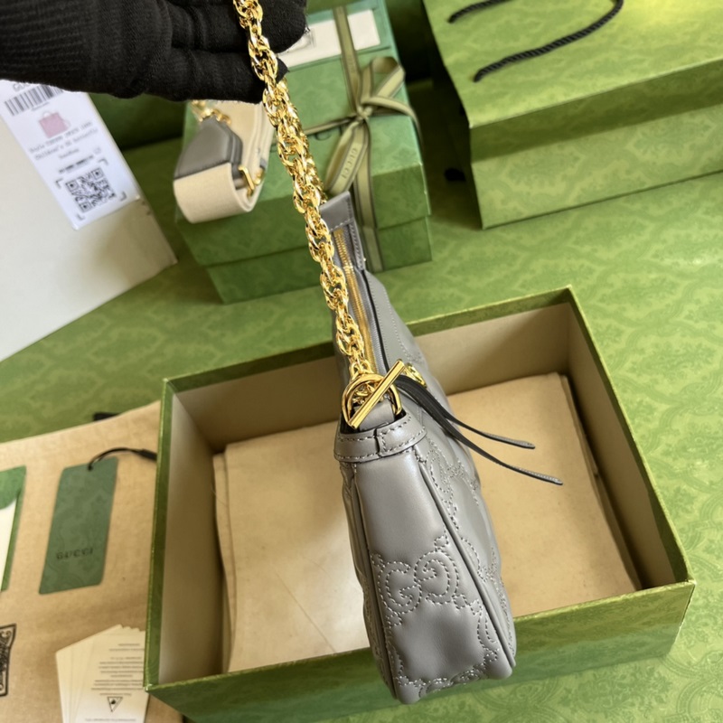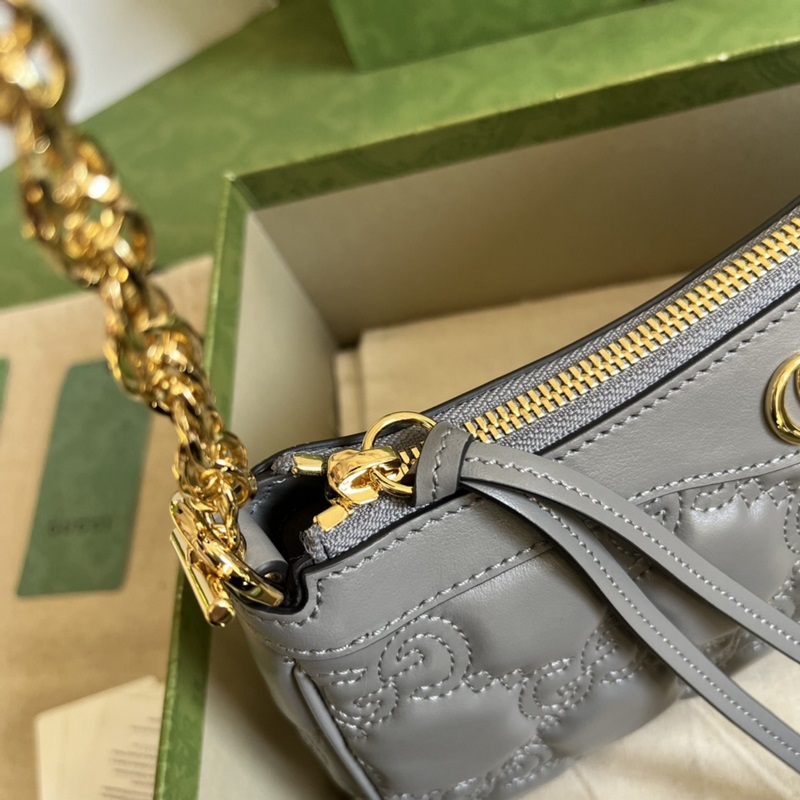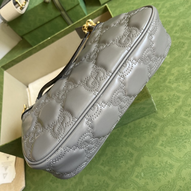 가죽 핸드백 1046은 브랜드의 시그니처 소재를 부드러운 질감으로 해석합니다. 질감이 있는 GG 패턴은 이 회색 가죽 핸드백을 포함한 일련의 핸드백을 생생하게 해석합니다. 앞면은 브랜드의 정체성을 전체 디자인에 불어넣는 더블 G 액세서리로 장식되어 있습니다. 회색 가죽 골드 톤 액세서리 더블 G 지퍼 잠금. 탈착식 어깨 끈 2개: 아이보리 나일론과 골드 톤 메탈. 상품 번호: 735049. 크기: 25(가로) x 15(세로) x 8cm(깊이) 색상: 그레이/엠보싱 G-브랜드 가죽. 이탈리아 디자인 번호: XP96181060