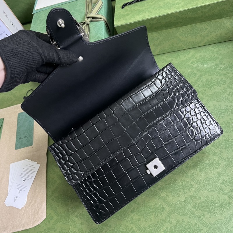 질감이 있는 호랑이 머리 디자인은 디오니소스 시리즈의 고전적인 특징으로 수집가의 디자인 상징을 연상시킵니다. 이 고양이 문양은 브랜드의 디자인 세계에 걸쳐 있으며 자연의 야생미에 대한 브랜드의 매력을 전달합니다. 이 단일 제품은 레트로 실버 톤 액세서리를 특징으로 하며 블랙과 아이보리 GG 블랙 크로커다일 그레인 가죽과 짝을 이룹니다. 품번: 400249. 크기: 28*18*9cm. 색상: 검정/악어 가죽. 아이템 번호: XP96181250