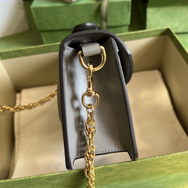 작은 가죽 핸드백. 가죽은 브랜드 크리에이티브 디렉터의 최첨단 디자인으로 매 시즌 세련된 디자인으로 선보입니다. 부드러운 질감의 상징적인 소재와 질감이 있는 기하학적 패턴이 결합되어 세련된 새로운 핸드백 컬렉션을 만들어 냅니다. 전체적인 디자인은 1990년대 상징적인 스타일을 현대적으로 해석한 것으로 이 회색 가죽 핸드백에 매력을 더해 줍니다. 회색 가죽 더블 G가 있는 골드 톤 하드웨어 캔버스 숄더 스트랩 2.5cm 핸들 높이 버클이 달린 금속 체인 스트랩도 함께 제공됩니다. 아이템 번호 724499. 크기: 18(가로) x 13(세로) x 6.5cm(깊이) 색상: 그레이/엠보싱 G 풀 가죽. 아이템 번호: XP96181160