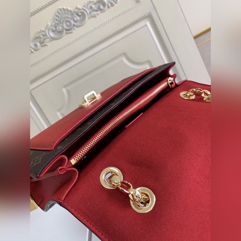 [해외 오리지널 싱글 독점 리얼 샷 M41730] [M41730 핑크 M41731 레드 M41732 자홍 M44038 블루] 프랑스산 맞춤형 모노그램 캔버스와 정교한 송아지 가죽 최고급 대만 수공예품 독창적인 단일 완벽한 아치형 바닥 품질을 인정하는 완벽한 소재 조합과 독특한 하드웨어 액세서리 비용 아끼지 않고 제작 어깨 손 크로스 바디 올인원 다용도 필수 모델 정교한 크라운 잠금장치 여왕의 스타일을 최대한으로 표현. 크기 26*9*15