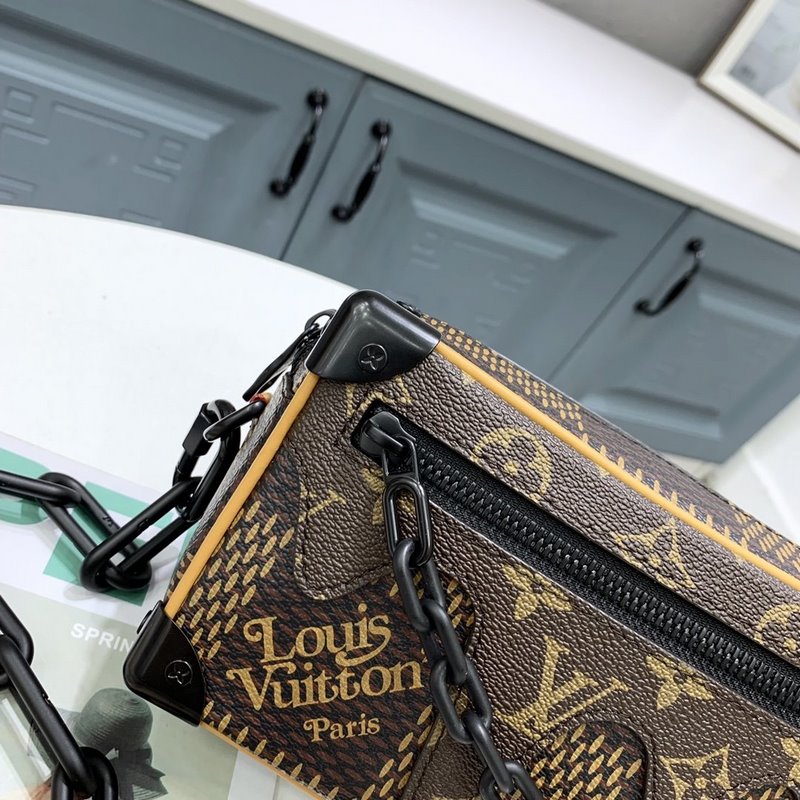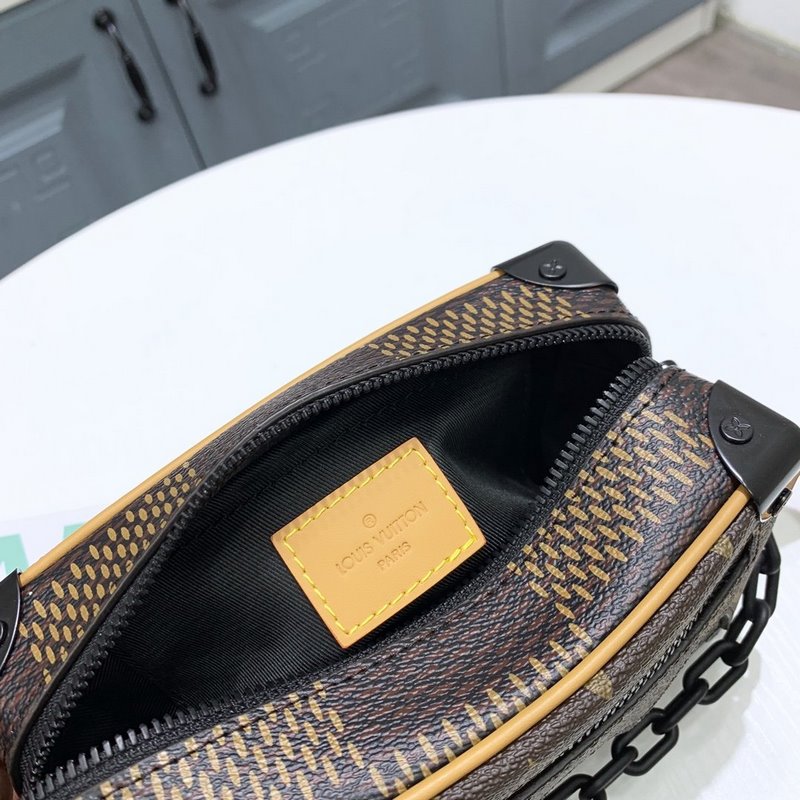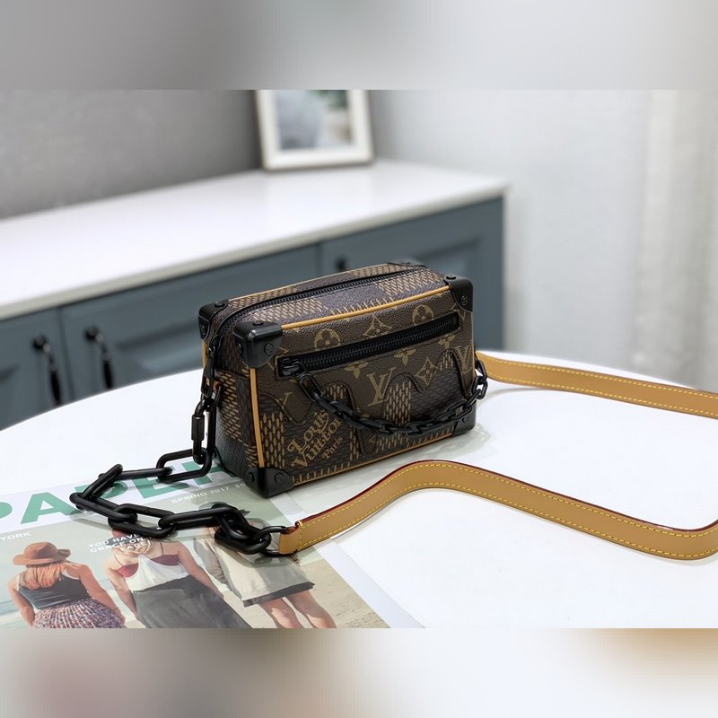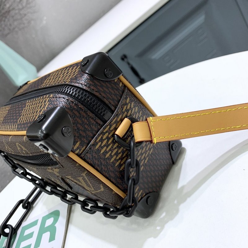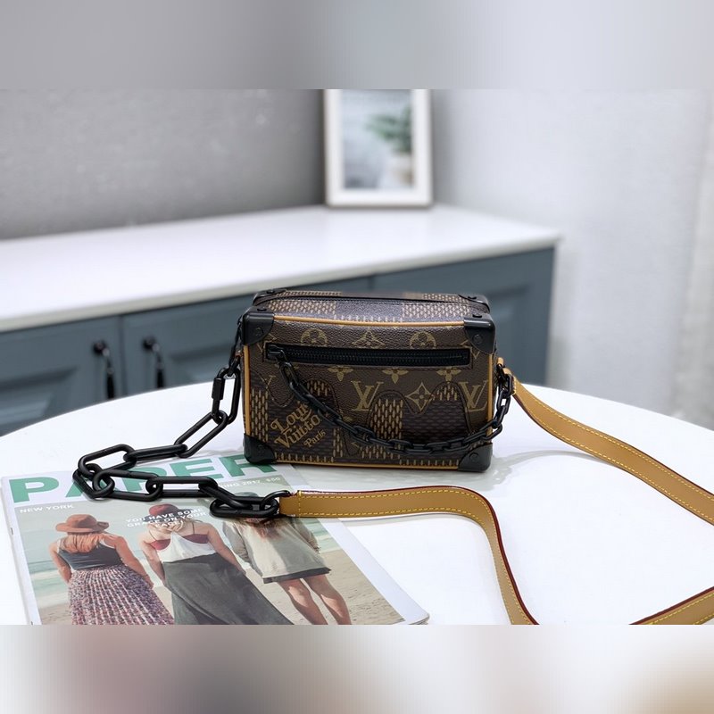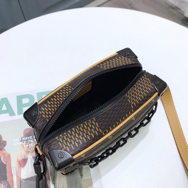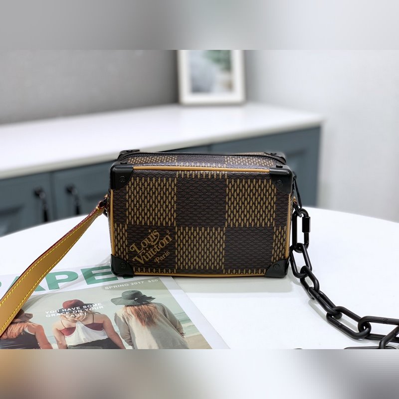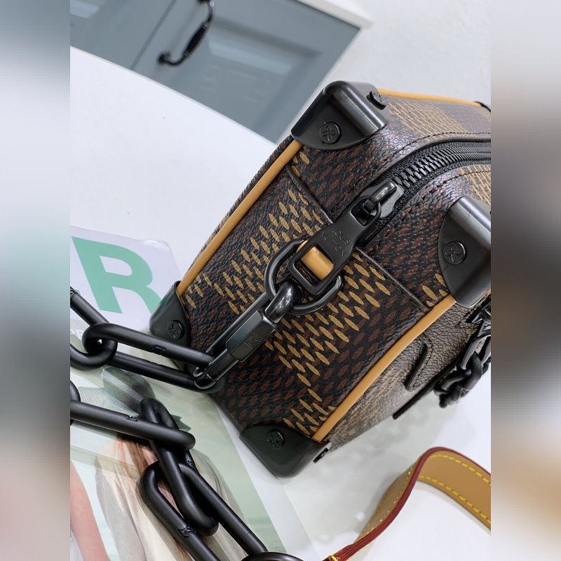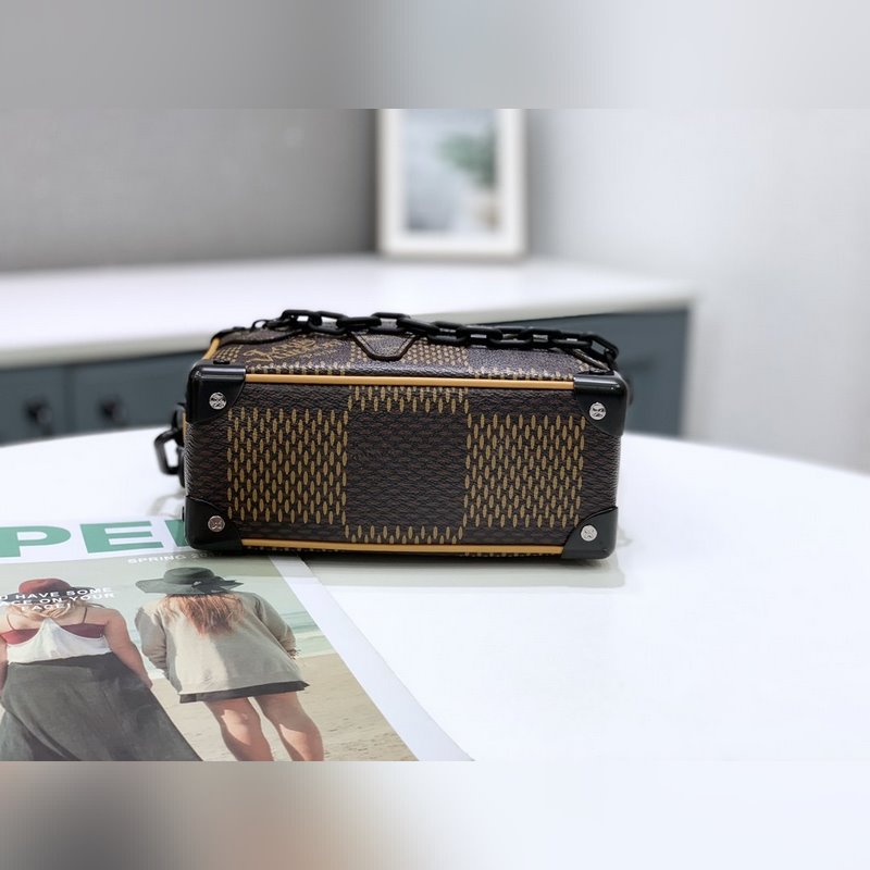 LV 아이템 번호: N60394 갈색 체크무늬 독서용 안경 MINI SOFT TRUNK 체인백 미니 소프트 트렁크 체인백은 눈길을 사로잡는 다미에 에벤 패턴의 캔버스 표면이 특징입니다. 상자 모양의 디자인과 강화된 모서리는 여행 가방을 만드는 브랜드의 유산을 반영하고 무광 체인은 트렌디한 개성을 더해줍니다. 어깨에 메거나 손으로 들 수 있습니다. 크기: 18.5 x 13.0 x 8.0cm 아이템 번호: RYX96181020