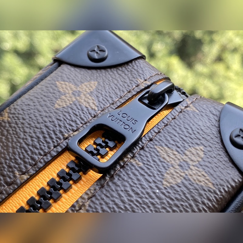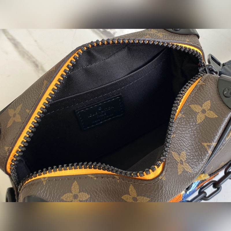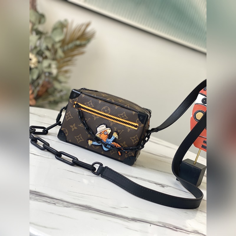 LV 모델 번호: M80159 자수 미니 소프트 트렁크 체인 백 모노그램 캔버스와 무광 가죽 트림으로 제작되었으며 2021년 봄/여름 패션쇼를 위해 버질 아블로가 만든 주룸의 애니메이션 캐릭터 자수가 특징입니다. 상단과 앞면 포켓 지퍼는 선명한 색상으로 주입되어 있습니다. 크기: 18.5 × 13 × 8cm 항목 번호: SG96181280 RYX96181020