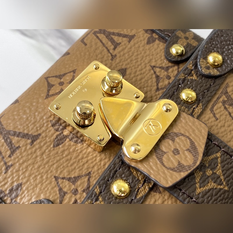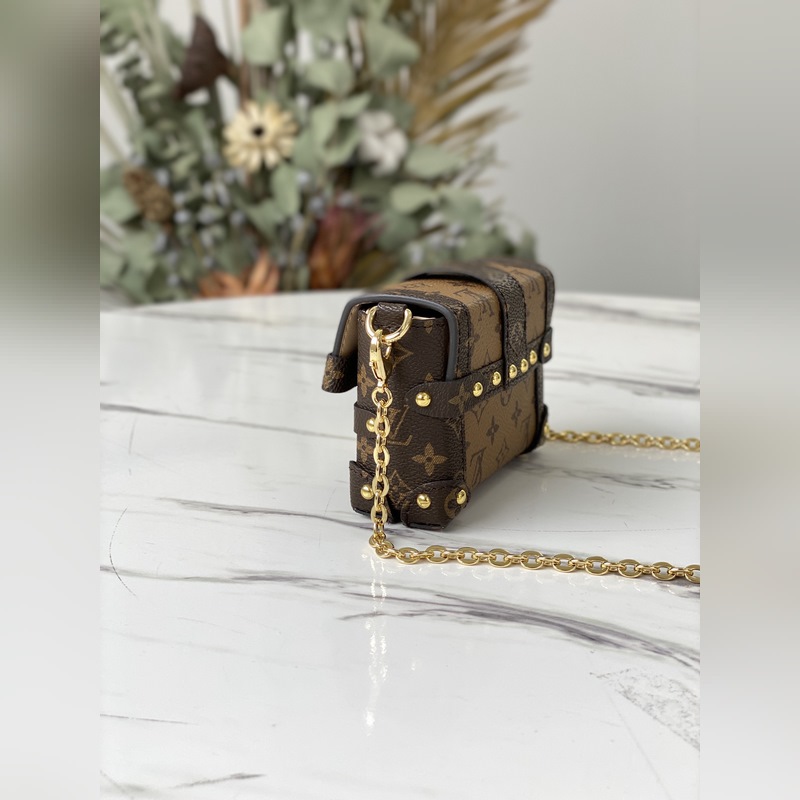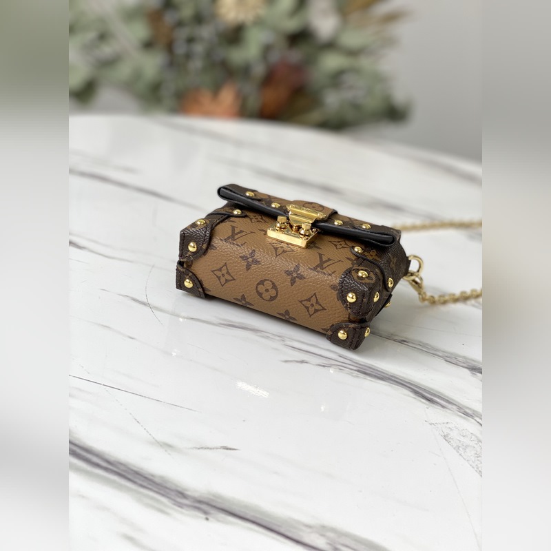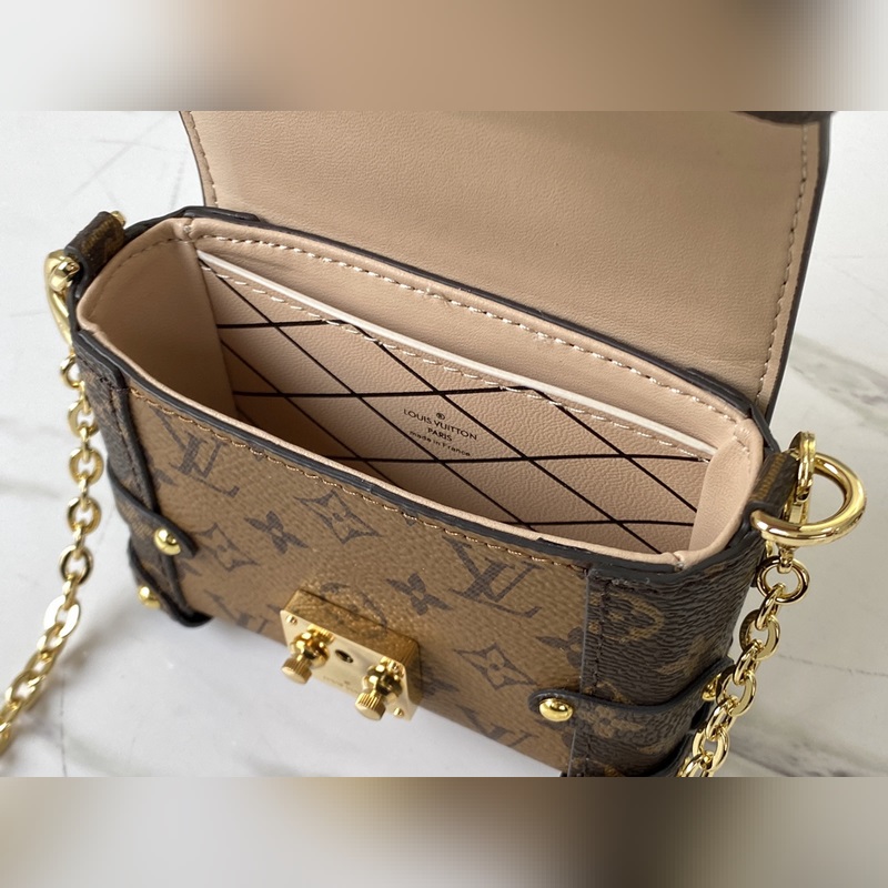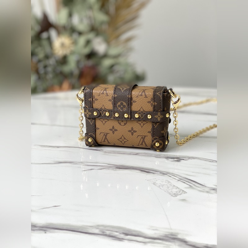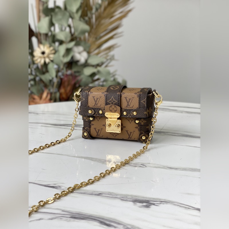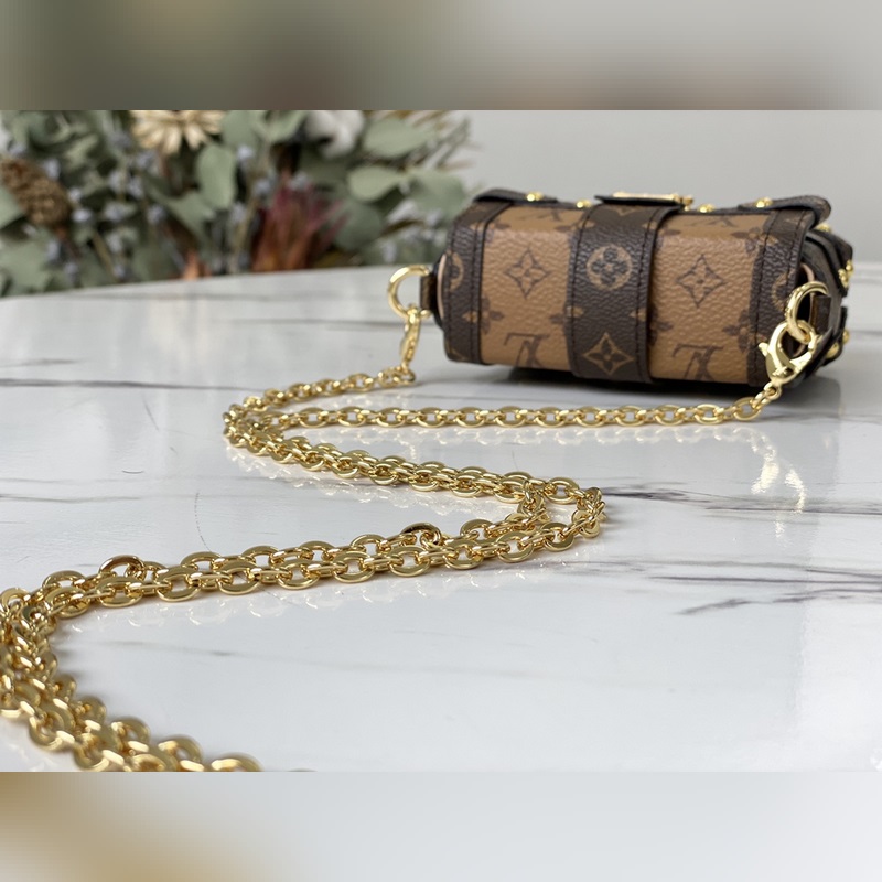 LV 아이템 번호 M68575 노란색 ESSENTIAL TRUNK 체인백 에센셜 트렁크 체인백은 전통적인 여행 가방 디자인에 경의를 표하는 여러 가지 상징적인 요소를 포함하고 있습니다: 모노그램 패턴 금속 스터드 S자형 잠금장치 말타쥬 프린트 안감. 크기: 7.5x10.5x4cm 항목 번호: SG96181020 LD9618900
