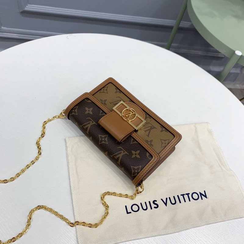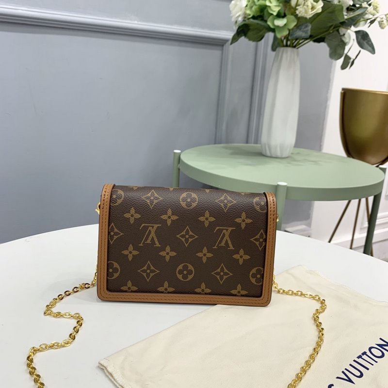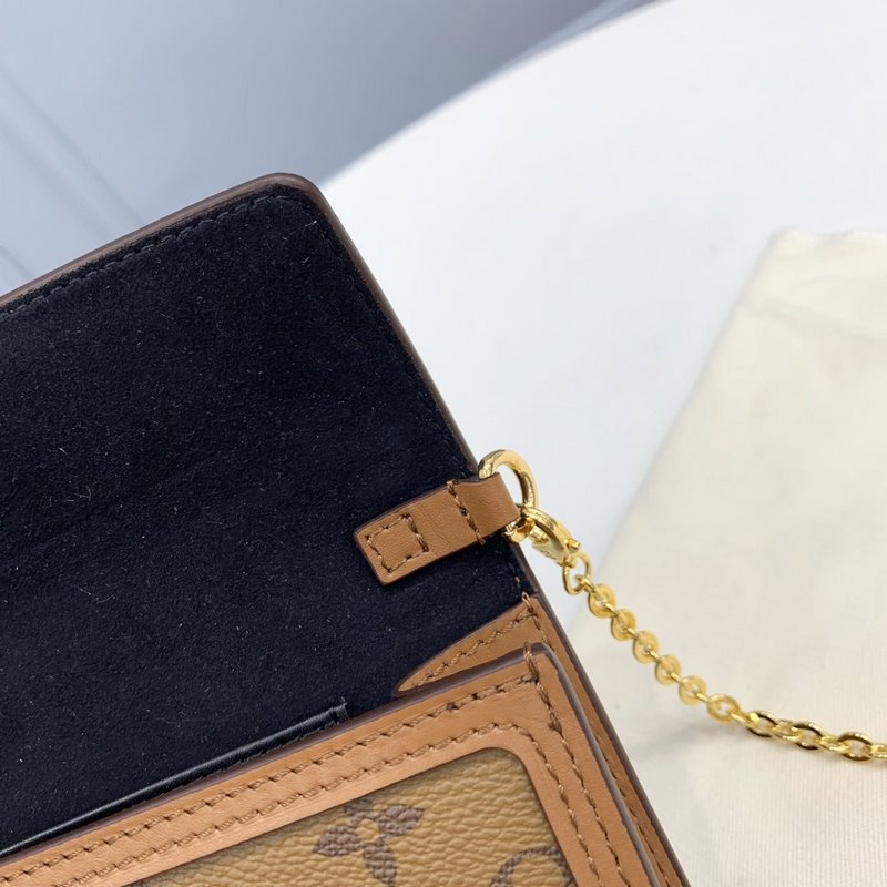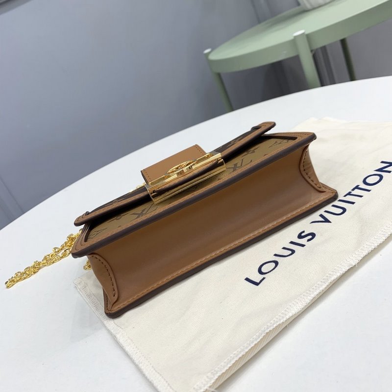 LV DAUPHINE 핸드백 모델 M68746 노란색 꽃 이 Dauphine 핸드백은 새로운 복고풍 미학이 현대성과 만나는 곳입니다. 모노그램과 모노그램 리버스 투톤 캔버스는 금색 금속 조각으로 연결되어 있습니다. 체인 숄더 스트랩과 자석 걸쇠가 함께 제공됩니다. 브랜드의 유산은 루이 비통의 패션적 자질을 충분히 드러내는 모던한 스타일로 표현됩니다. 스트랩을 분리하면 즉시 클러치 백으로 변신합니다. 상세 특징 - 19.0 x 12.0 x 5.0cm(길이 x 높이 x 너비). 번호: RYX9618860