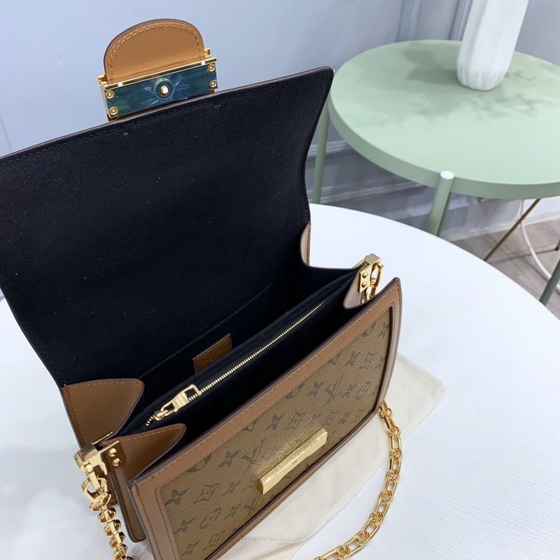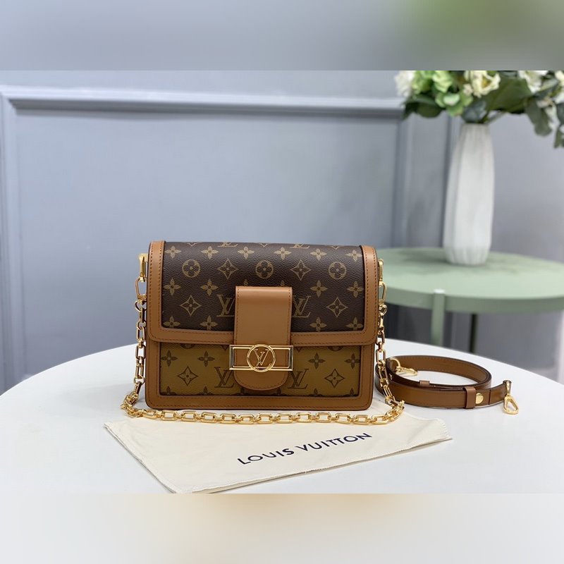 LV DAUPHINE 핸드백 모델 M44391 옐로우 믹스 루이 비통의 상징적인 도핀 핸드백 컬렉션에 새롭게 추가된 제품 2019년 봄 프리 컬렉션 제품 여성 패션 제품 아트 디렉터 니콜라 제스키에르의 재해석 모노그램 캔버스와 모노그램 리버스 캔버스 결합 자석 걸쇠가 달린 체인 숄더 스트랩 특징 전통적인 스타일에 현대적인 감각을 더한 제품 진정한 루이 비통 패션의 상징 모노그램 캔버스 애호가에게 이상적인 제품 크기 25x17x10.5cm 제품 번호: 캔버스 모노그램 애호가들의 이상적인 크기 25x17x10.5cm No. RYX96181020