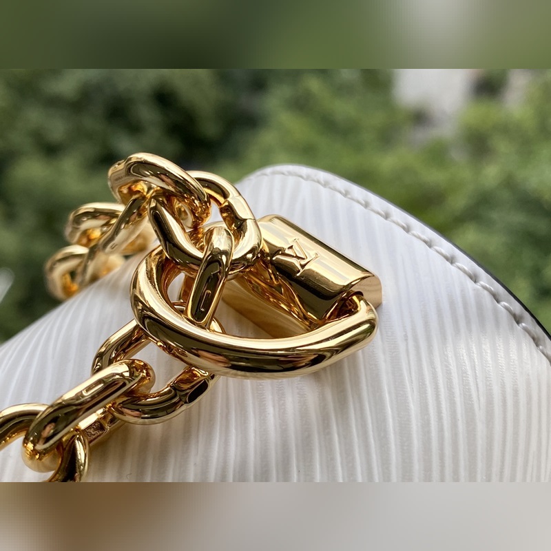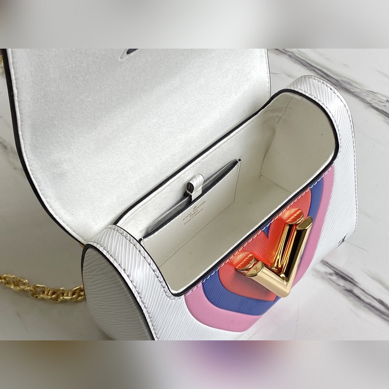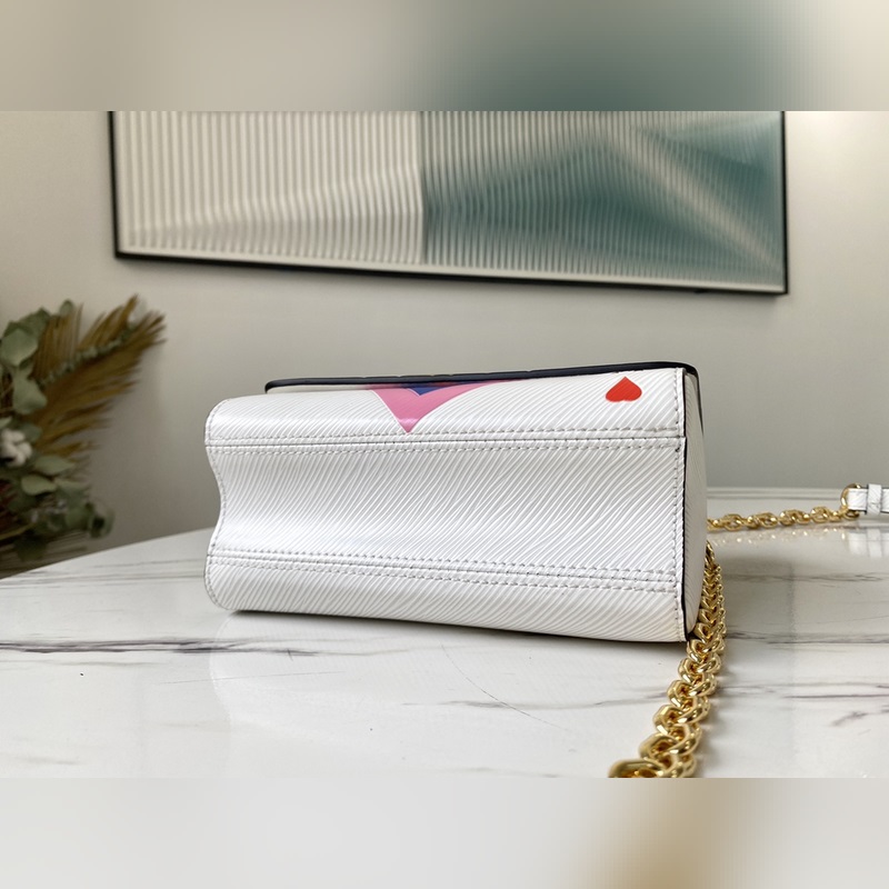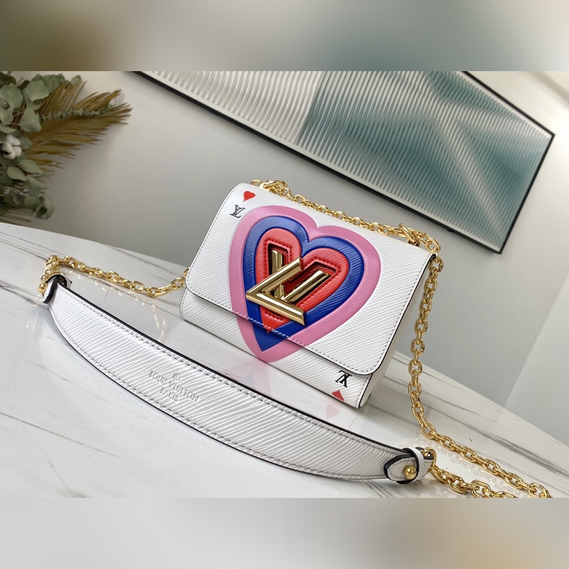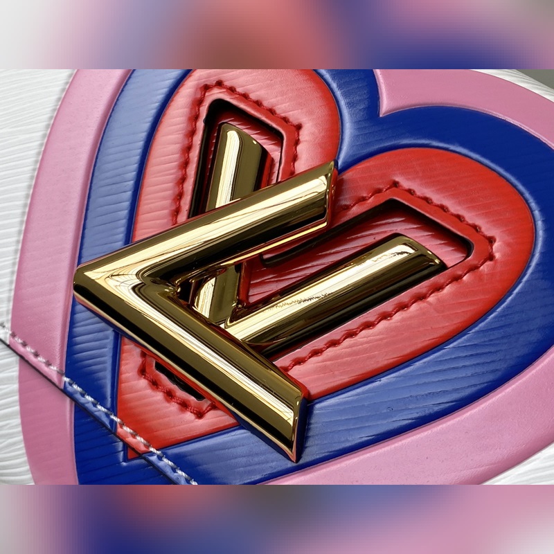 LV 모델 번호: M57460 Game On 캡슐 컬렉션의 작은 가방 트위스트 에피 가죽의 커다란 하트 모양 프린트는 중앙에 있는 트위스트 락의 눈길을 사로잡는 광채를 강조합니다. 슬라이딩 숄더 스트랩에는 가죽 숄더 패드가 장착되어 있습니다. 크기: 19 x 15 x 9cm 상품 번호: SG96181350 96181260