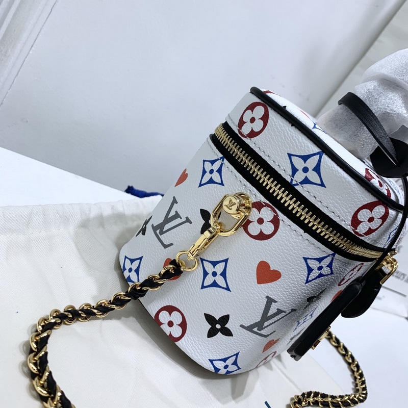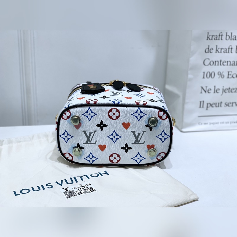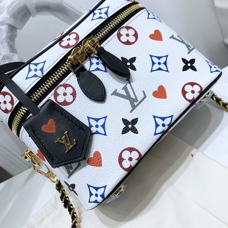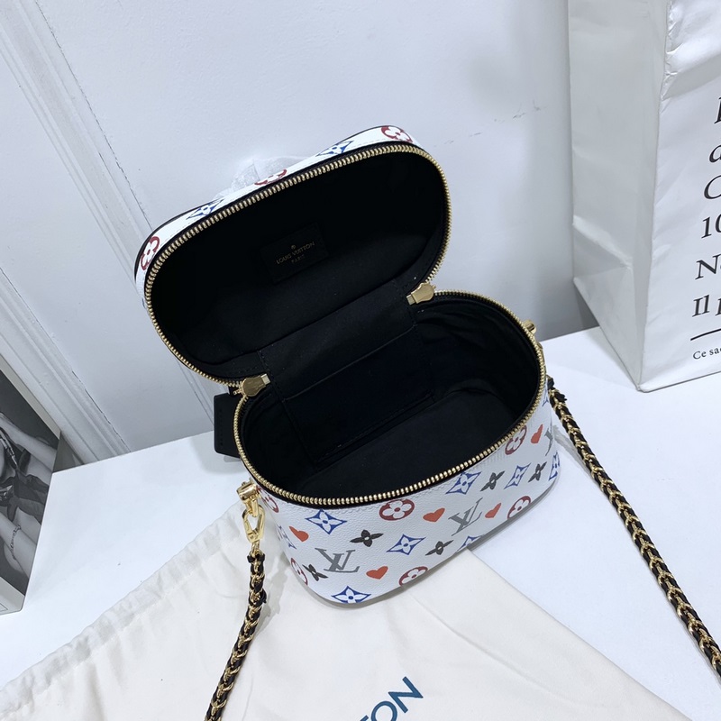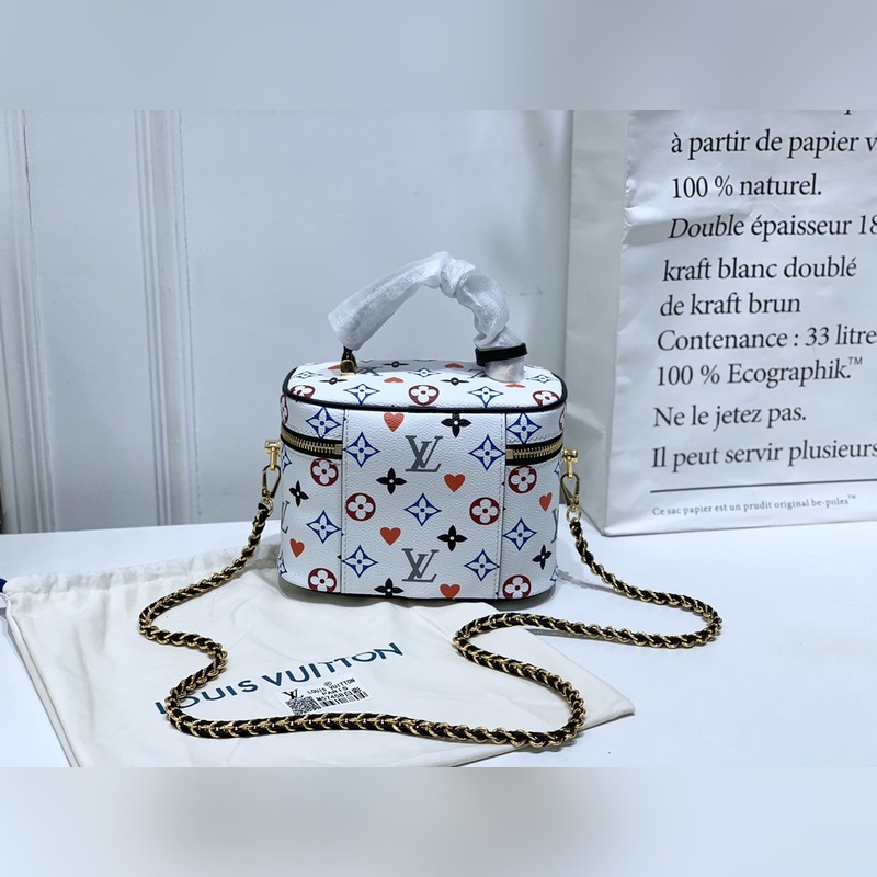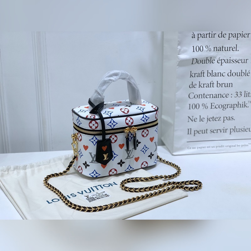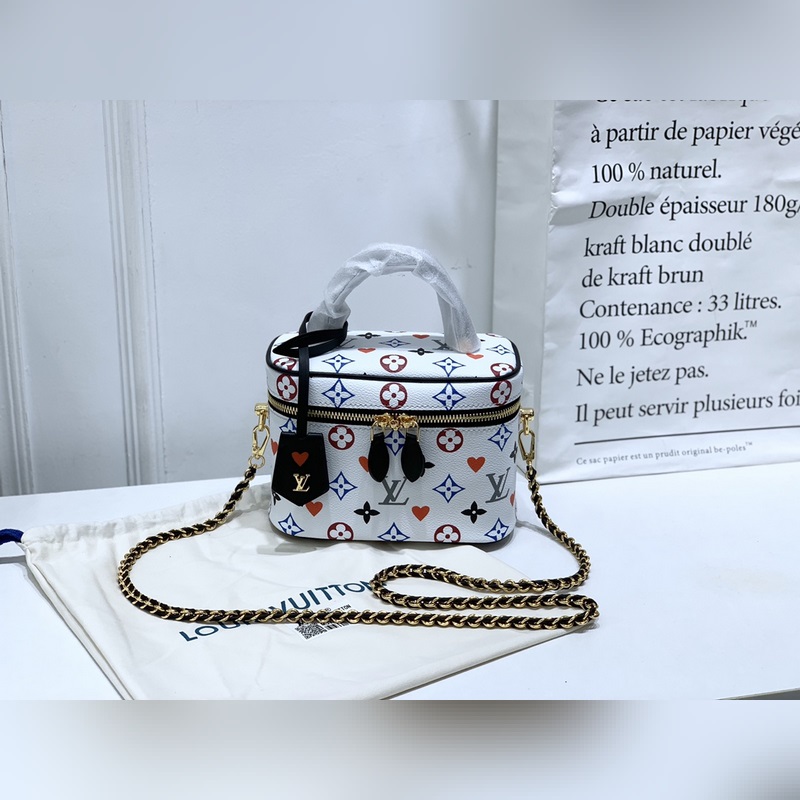 LV 베니티 스몰 핸드백 모델 번호: M57482 이 베니티 스몰 백은 새로운 게임 온 모노그램 캔버스로 만들어졌으며 니콜라 제스키에르의 모노그램 플라워가 특징입니다. 부드럽고 컴팩트한 디자인으로 손에 들거나 어깨에 메거나 몸에 걸칠 수 있습니다. 크기: 19 x 13 x 11cm 아이템 번호: RYX9618920