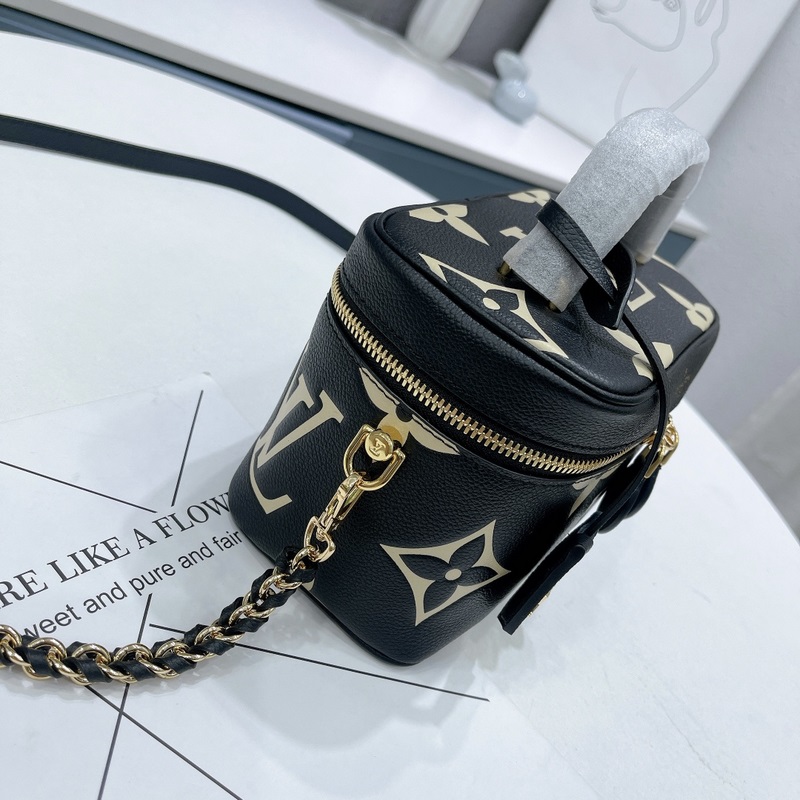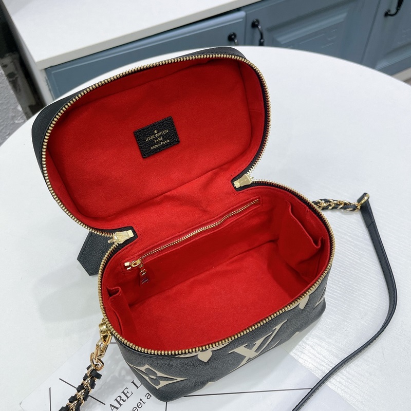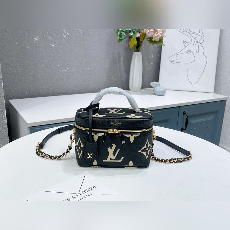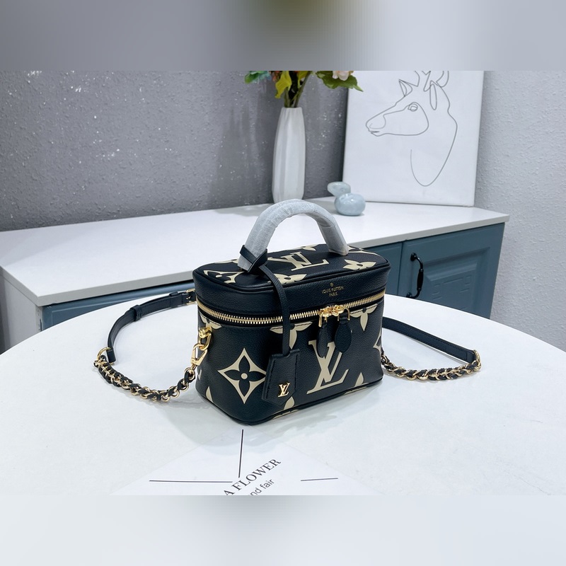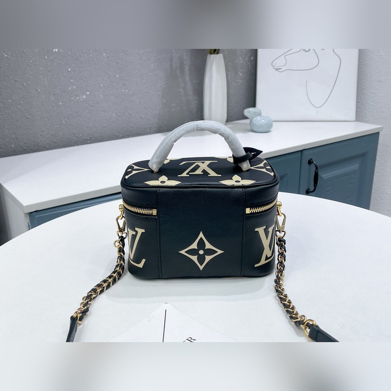 LV 허영심 작은 가방 REF. M45780 검정색 허영심 작은 가방 모노그램 니스 베니티 화장품 가방에서 영감을 받은 이 가방은 자이언트 모노그램 패턴이 양각으로 새겨진 모노그램 앙프렝뜨 가죽으로 만들어졌습니다. 가죽 태슬 지퍼 손잡이 우아한 손잡이 탈착식 어깨 스트랩이 세련된 스타일과 실용적인 기능을 결합합니다. 크기: 19 x 13 x 11cm 아이템 번호: RYX96181080