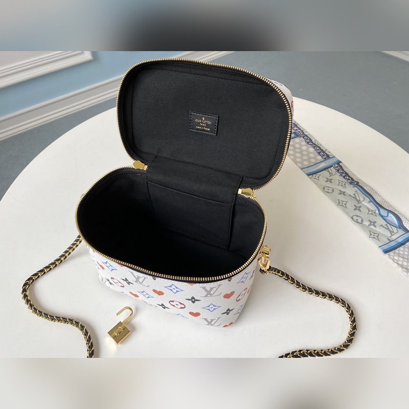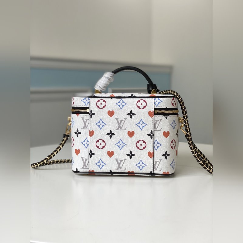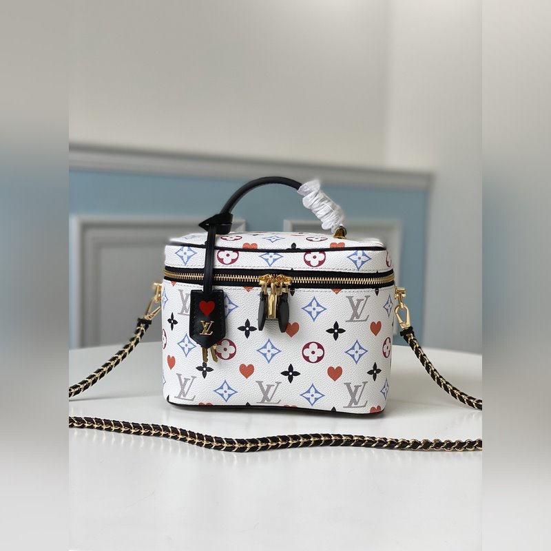 LV 모델 M45163 화이트 포커 시리즈 VANITY 미디엄 핸드백