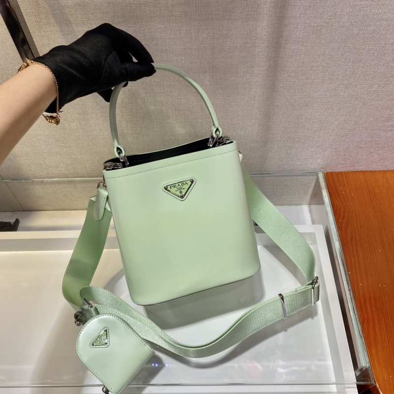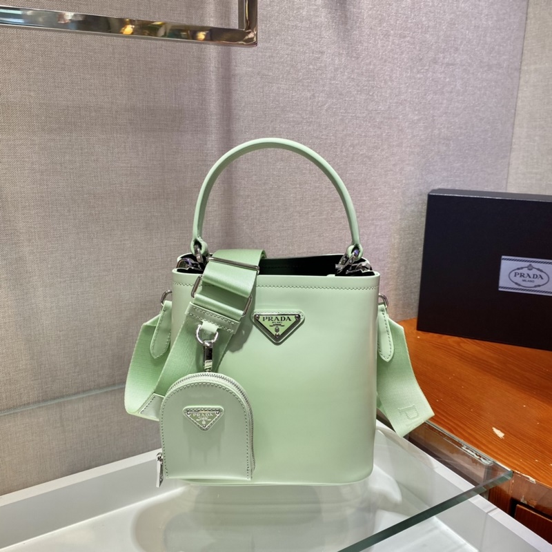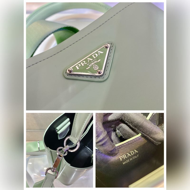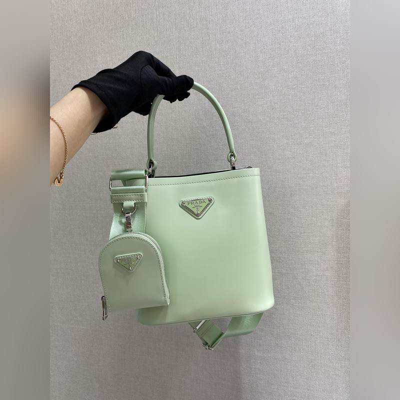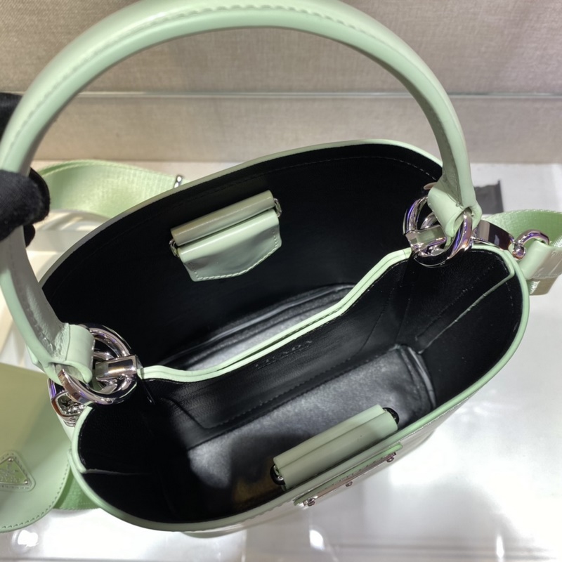 프라다 광택 있는 버킷백 신모델 번호: 1BA3 이 핸드백은 반짝이는