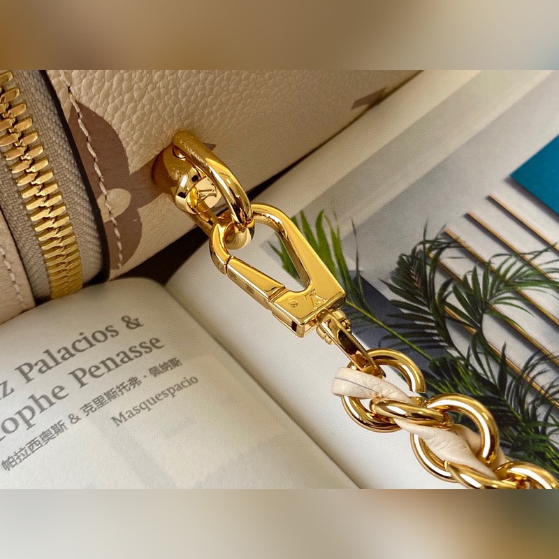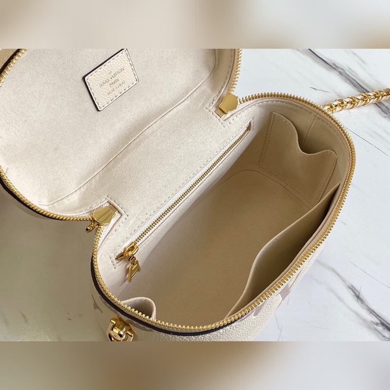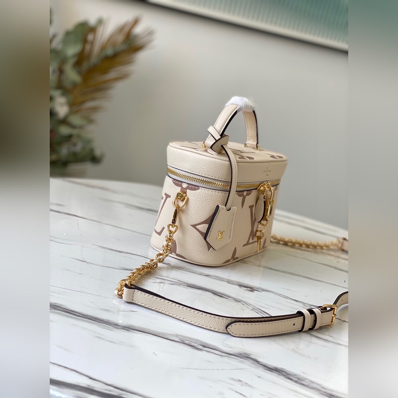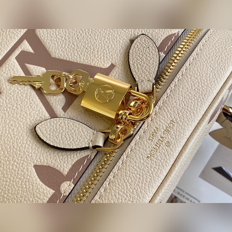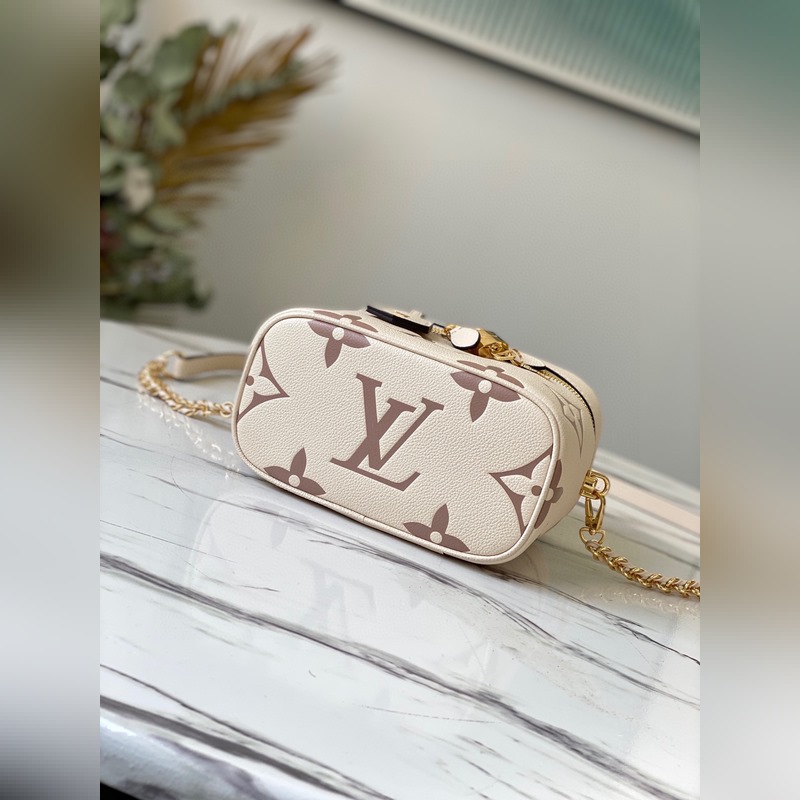 LV 모델 번호: M45599 허영심 작은 핸드백 모노그램 니스 배니티 화장품 가방에서 영감을 받은 이 가방은 자이언트 모노그램 패턴이 양각으로 새겨진 모노그램 앙프렝뜨 가죽으로 만들어졌습니다. 가죽 태슬 지퍼 손잡이 우아한 손잡이 탈착식 어깨 스트랩이 세련된 스타일과 실용적인 기능을 결합합니다. 크기: 19 x 13 x 11cm 품번: SG96181300