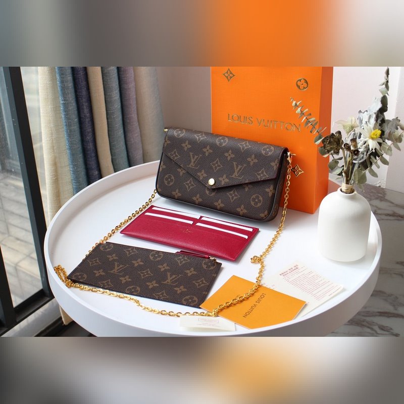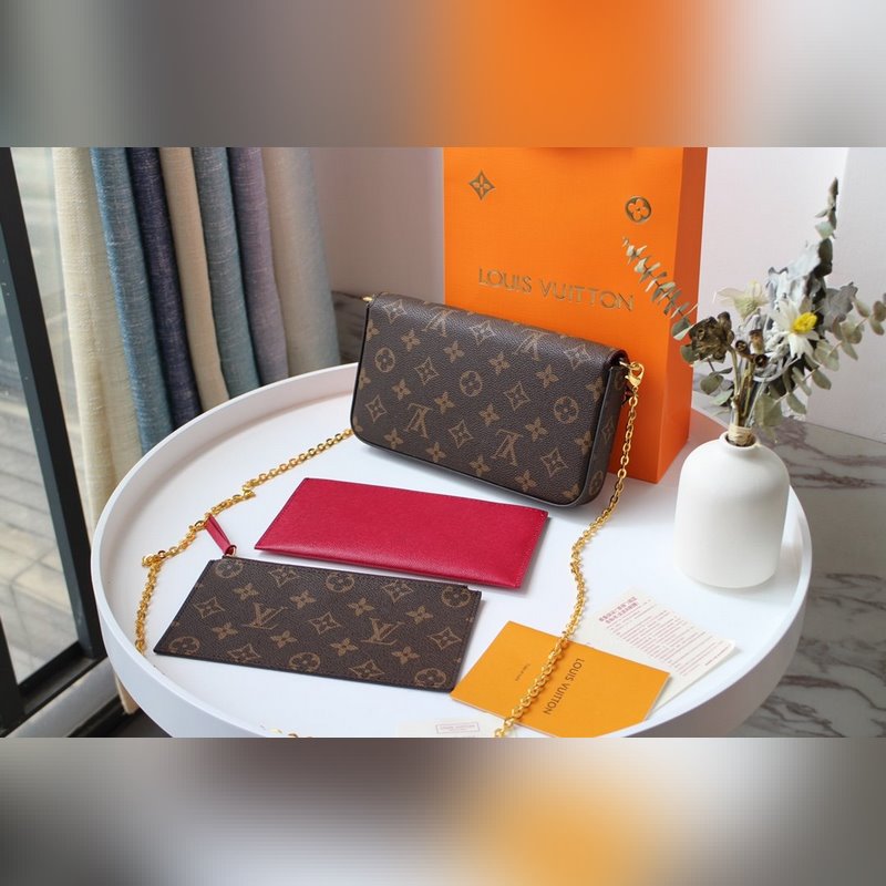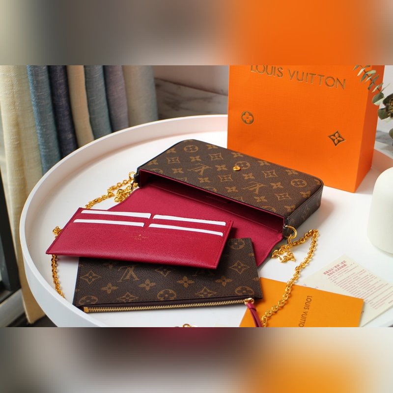 LV FELICIE 대형 핸드백 모델 M61276 펠리시 핸드백은 내부에 탈착식 포켓이 두 개 있는 우아하고 고급스러운 제품입니다. 일상용품들을 휴대하고 정리하는 데 유용한 세련된 선택입니다. 단순한 지갑이 아닙니다. 골드 체인 외에도 매력적인 핸드백이나 작은 핸드백으로도 사용할 수 있습니다. 크기 21X11X2CM 번호: LD9618780