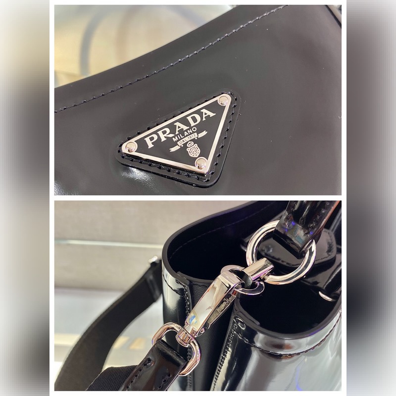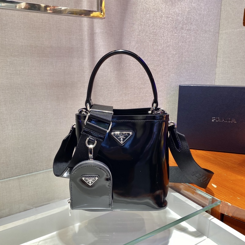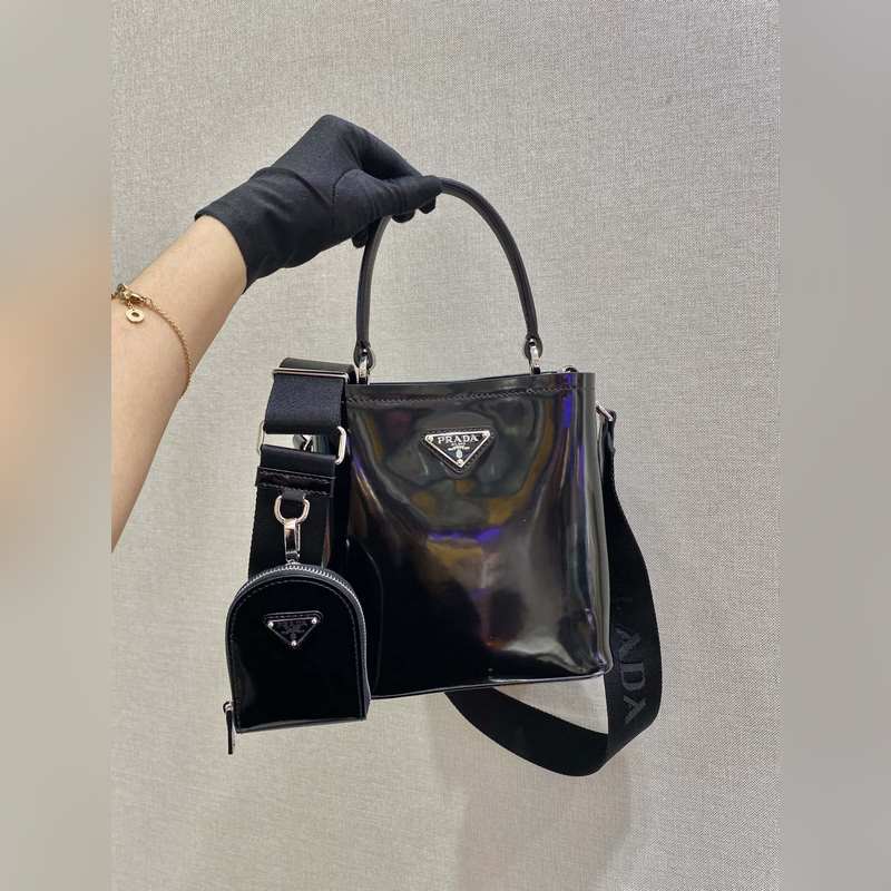 프라다 광택 있는 버킷백 신모델 번호: 1BA3 이 핸드백은 반짝이는