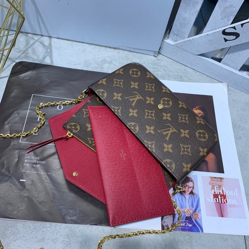LV 모델 M61276 노안용 우아하고 고급스러운 Felicie 핸드백 탈착식 포켓 2개가 달린 이 클립은 일상적인 물건을 휴대하고 정리하는 세련된 방법입니다. 이 클립은 단순한 머니 클립 그 이상입니다: 골드 체인이 없으면 화려한 클러치나 작은 핸드백으로 사용할 수 있습니다. 21.0 x 11.0 x 2.0. 항목 번호: RYX9618720