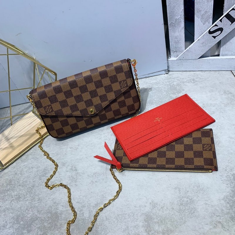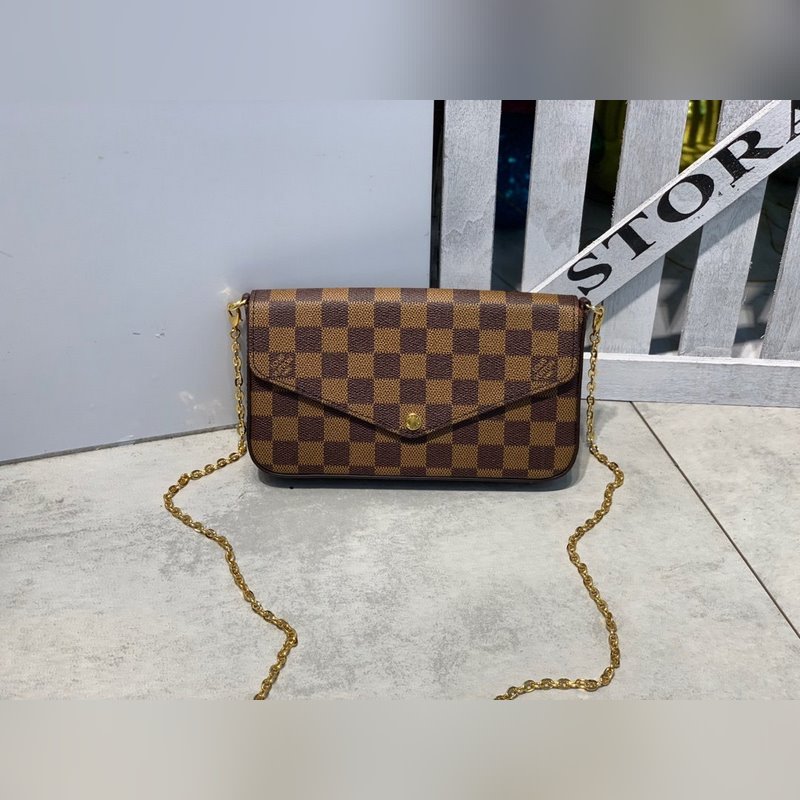 LV 모델 M61276 브라운 펠리시 핸드백 우아하고 고급스러운 탈착식 포켓 2개가 달린 이 클립은 일상적인 물건을 휴대하고 정리하는 데 세련된 선택입니다. 이 클립은 단순한 머니 클립이 아니라 골드 체인을 분리하면 매력적인 핸드백이나 작은 핸드백으로도 사용할 수 있습니다. 21.0 x 11.0 x 2.0. 항목 번호: RYX9618720