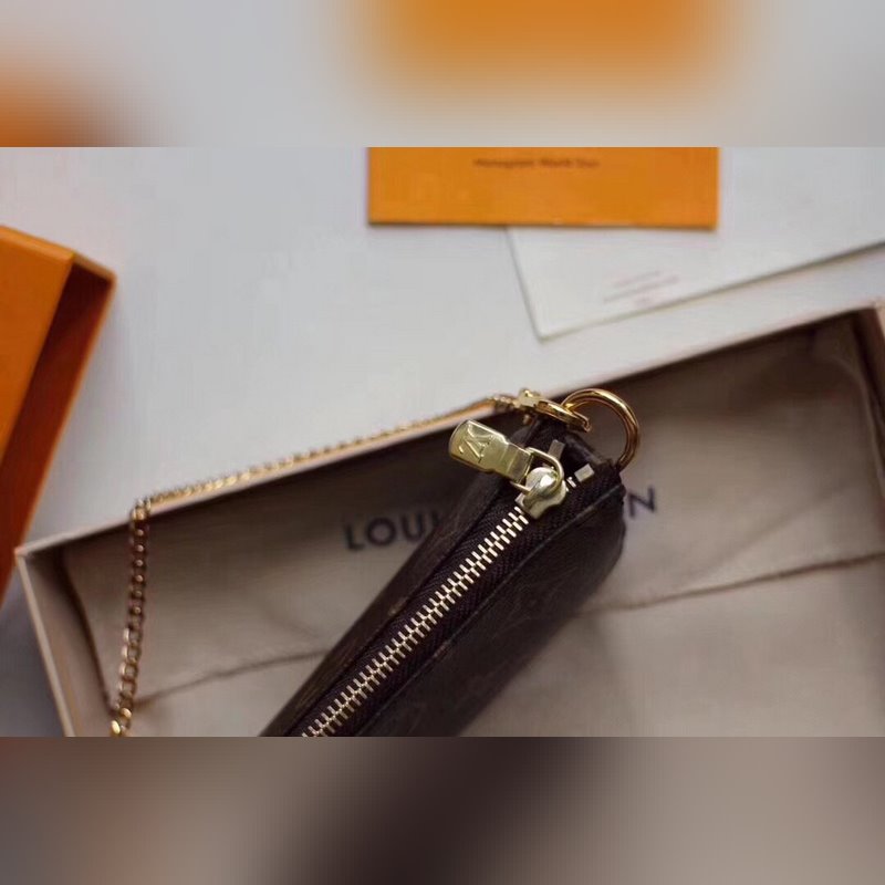 LV 미니 포셰트 액세서리 작은 핸드백 모델 N58009 이 작은 가방은 화장품이나 다양한 개인 물품을 보관하는 데 적합합니다. 금색 황동 체인이 달려 있어 가방을 핸드백이나 청바지에 쉽게 부착할 수 있습니다. 4.5 x 9.5 x 4.0 cm (가로 x 세로 x 높이) 항목 번호: LD9618660