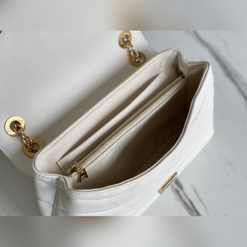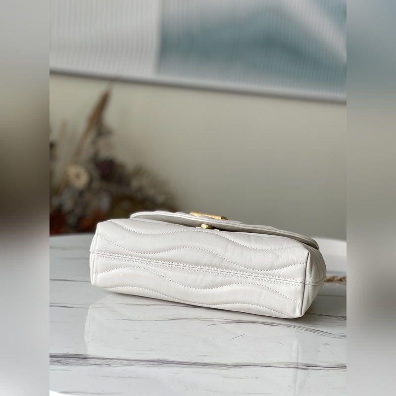 LV 아이템 번호: M58549 NEW WAVE 체인백 V자형 퀼팅 체인백 빈티지 골드 컬러 체인이 각인된 구멍을 통과하고 접을 수 있는 잠금장치로 유연하게 사용할 수 있습니다. 여러 개의 수납공간 덕분에 내부 공간이 여성을 위한 필수품을 정리하기 쉽게 만들어 줍니다. 쉽게 알아볼 수 있는 배지 로고가 있는 체인 백. 크기: 24x14x9cm 항목 번호: SG96181360 LD96181100 9618