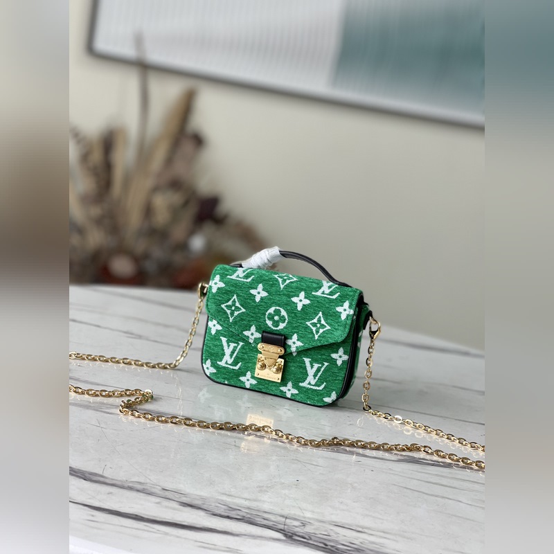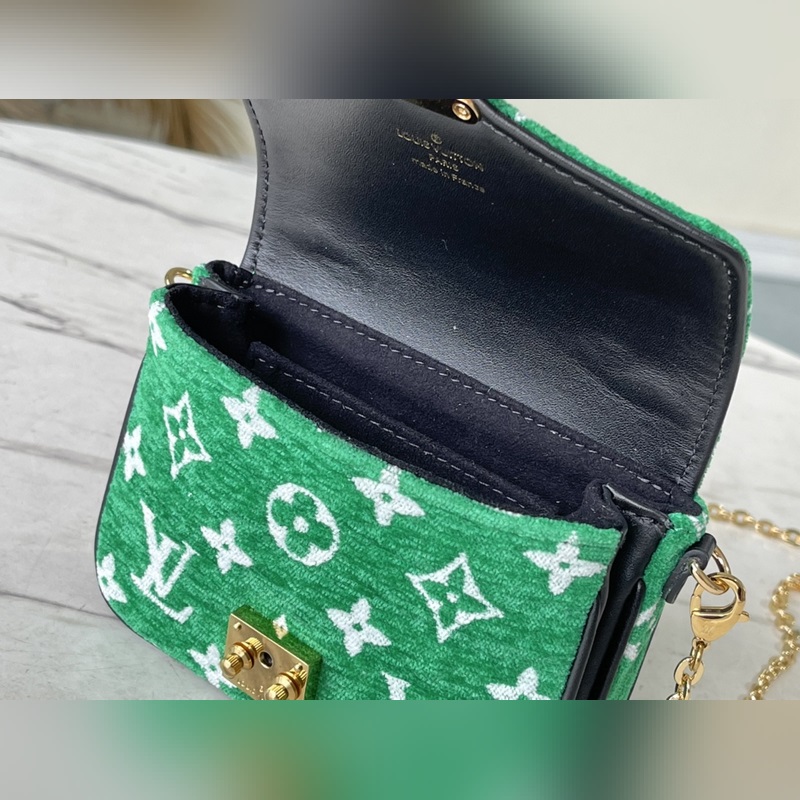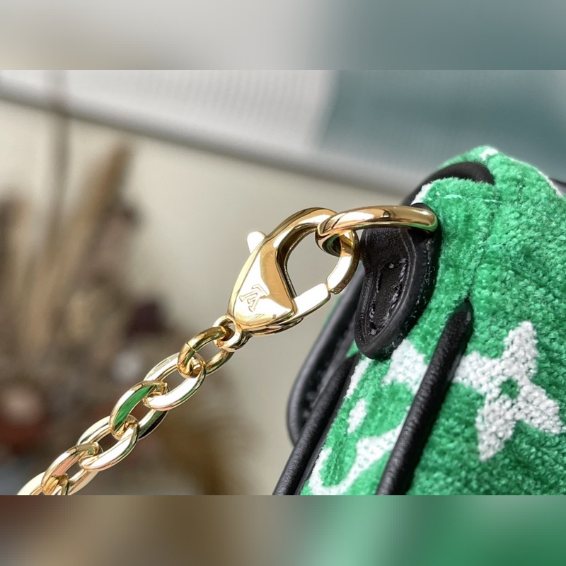 LV 아이템 번호: M81494 체인 백 세계 최고의 테니스 경기의 열기를 느껴보세요. 재활용 원사로 만든 자카드 벨벳 소재로 주머니와 같은 모양을 만들어 냈으며 루이비통의 하드 케이스에서 가져온 S-락 버클은 메티스 시리즈의 상징적인 요소를 이어가고 탈착식 체인은 트렌디한 휴대 방법을 가능하게 합니다. 크기: 14 x 11 x 3.5cm 품번: SG96181050