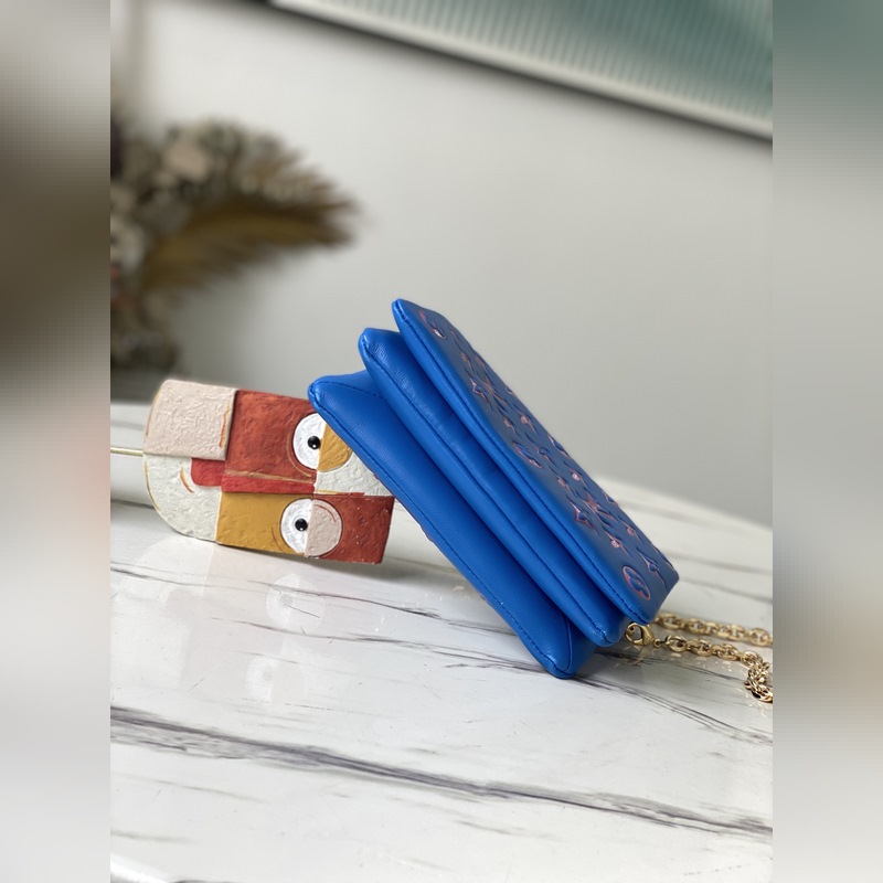 LV 상품 번호: M80743 쿠쉰 체인 백 양가죽에 엠보싱 처리된 모노그램은 베개처럼 폭신폭신한 질감을 선사합니다. 스마트한 모양 덕분에 휴대할 수 있을 뿐 아니라 펜던트로 장식된 탈착식 체인을 이용해 클러치백이나 허리 가방으로도 사용할 수 있습니다. 크기: 20 x 14 x 8cm 아이템 번호: SG96181250