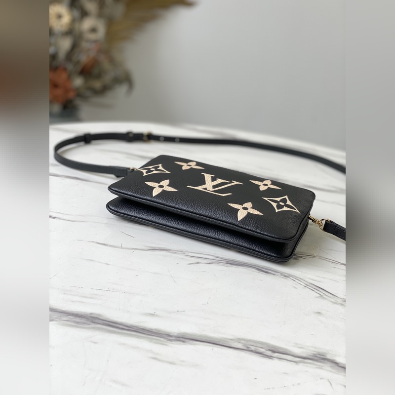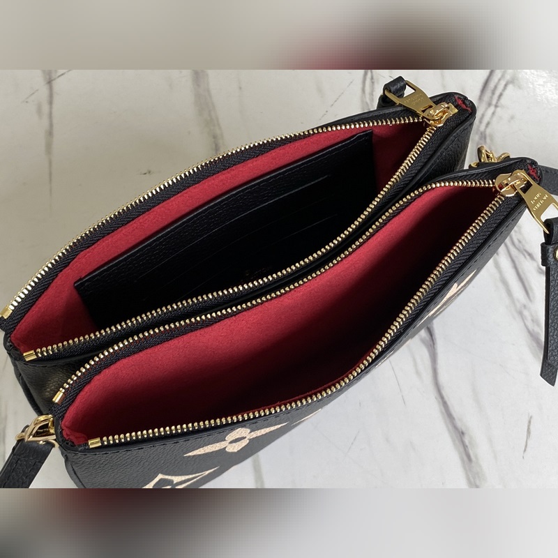 LV 상품 번호: M80084 모노그램 앙프렝뜨 더블 지퍼 파우치 체인 백 모노그램 앙프렝뜨 소가죽은 어두운 톤의 클래식한 모노그램 패턴이 양각으로 새겨져 있습니다. 지퍼 포켓과 중간 패치 포켓은 물건을 안전하게 보관할 수 있게 해주고 탈착식 체인은 어깨에 메거나 손에 들고 다니는 것을 원하는 대로 바꿀 수 있게 해줍니다. 크기: 20 x 12.5 x 3cm 아이템 번호: SG96181000
