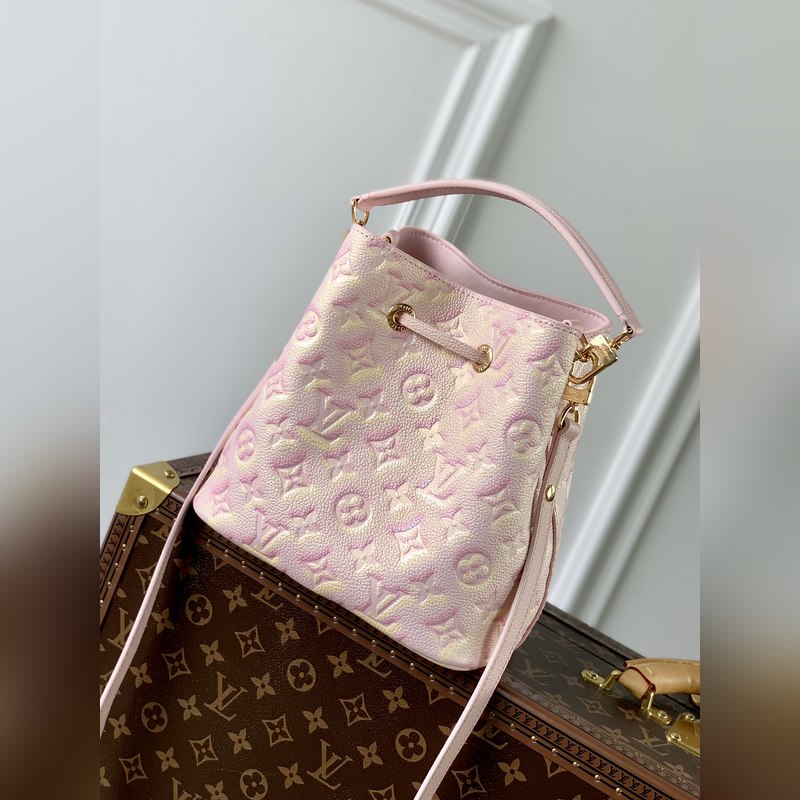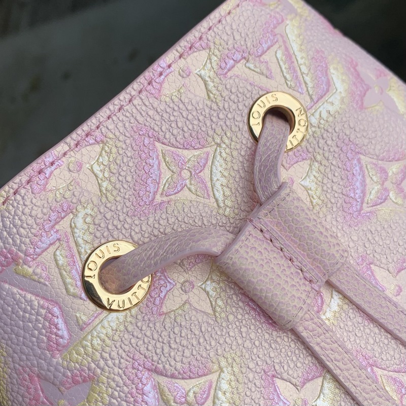LV 모델 M46174 파우더 컴팩트 NeoNo? BB 버킷 백 모노그램 앙프렝뜨 가죽으로 제작되었으며 3단계 스프레이 기법으로 광택이 있는 무지갯빛 효과를 만들어 여름 스타더스트 컬렉션의 색채 이야기를 들려줍니다. 끈으로 묶는 방식의 잠금장치와 스냅 버튼이 달린 내부 포켓이 기능성을 더해 주며 탈착식 손잡이와 어깨끈으로 다양한 운반 옵션을 제공합니다. 크기: 20 x 20 x 13cm(길이 x 높이 x 너비) 0880