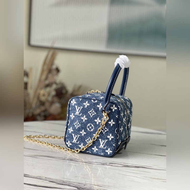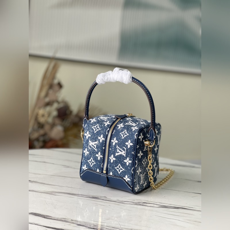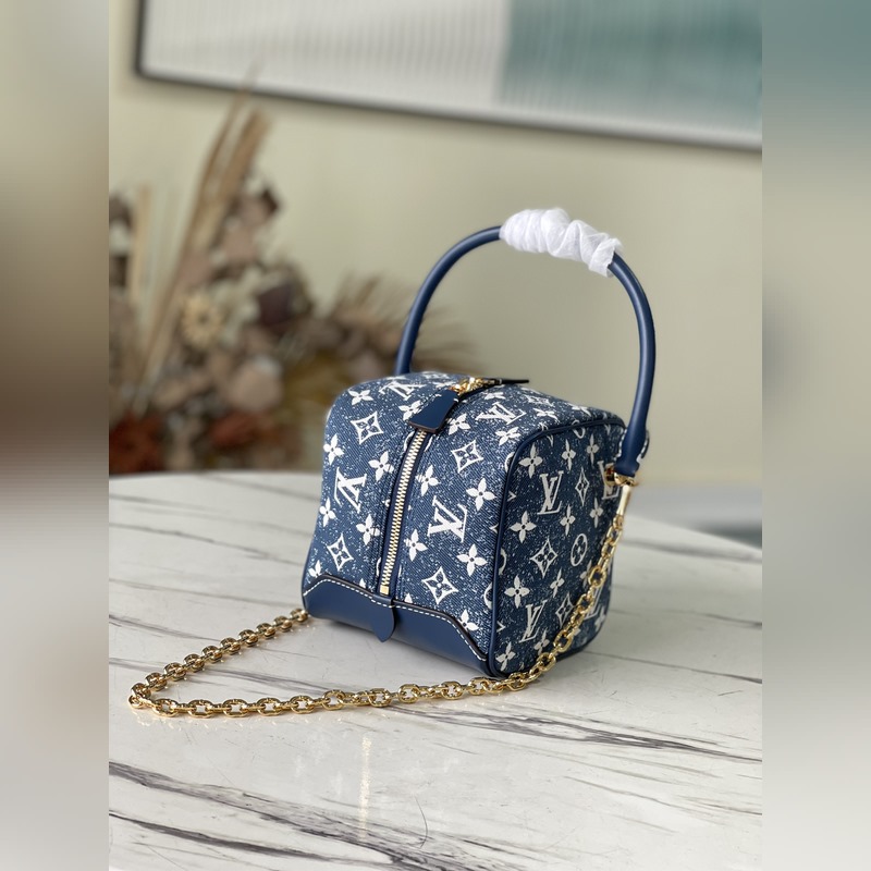 LV 모델 번호: M59611 청바지 한 벌(파란색) 색상: 스퀘어 핸드백 클래식한 로고 데님으로 만든 여성용 화장품 케이스에서 영감을 받은 이 제품은 지속 가능한 데님 공예에 대한 끊임없는 추구를 보여주고 소가죽 트림은 새로운 복고풍 분위기를 자아냅니다. 탈착식 체인이 함께 제공됩니다. 크기: 16.0x16.0x16.0cm 아이템 번호: SG96181180
