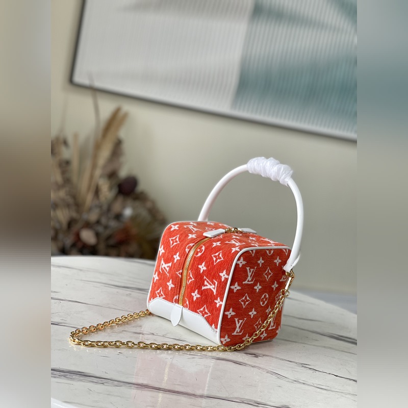 LV 모델 번호: M46212 그랜드 슬램 테니스 토너먼트의 정신을 담은 핸드백 친환경 셔닐 실로 만든 자카드 직물 가죽 트리밍 및 금속 부품. 모든 여행에 필요한 컴팩트한 디자인. 크기: 16 x 16 x 16cm 항목 번호: SG96181180 9618970
