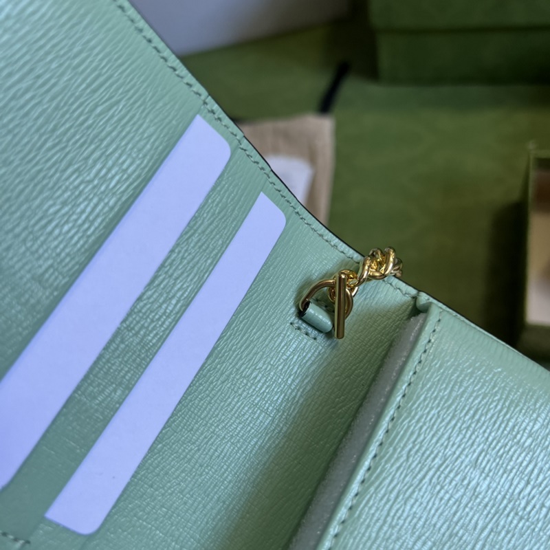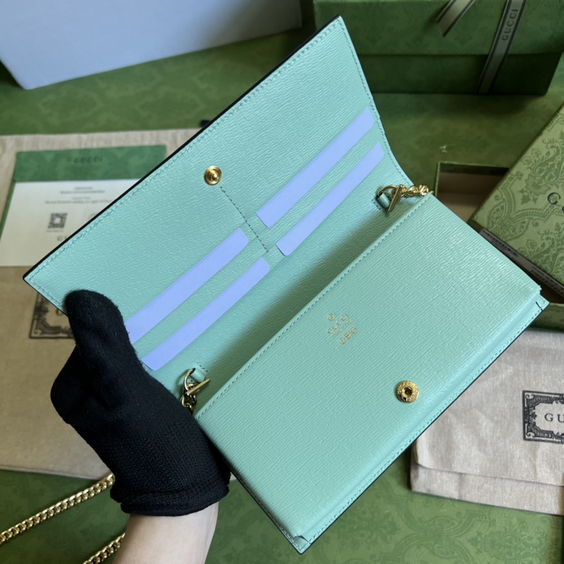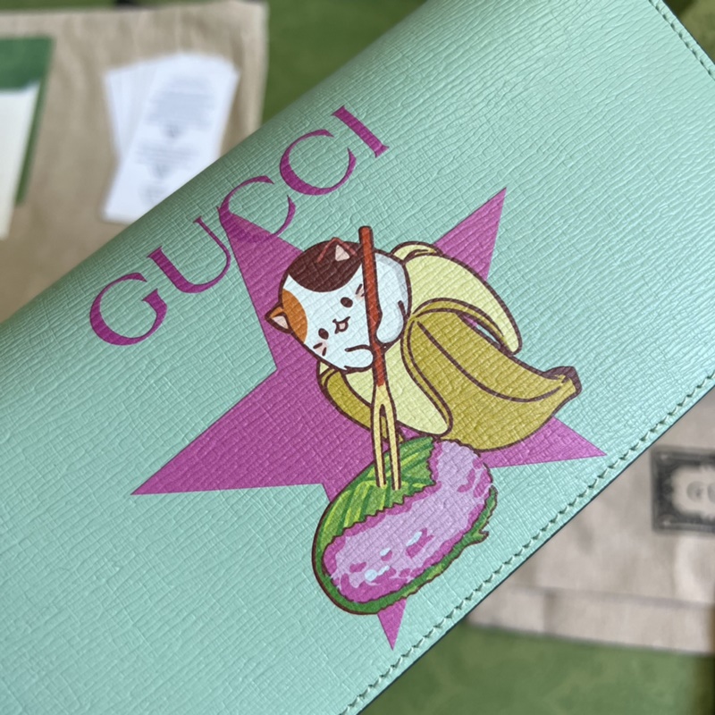오리지널 그린 박스 포장. 무지개와 별 무늬 체인 백. 프린트는 Gucci Love March 시리즈 전체에 걸쳐 사용되어 장난기 있는 디자인 미학을 강조합니다. 이 활기찬 고양이는 친구들과 함께 하는 다양한 귀여운 장난과 모험으로 유명합니다. 이 GG 카드 홀더는 무지개와 별 무늬로 장식된 귀여운 바나나 야옹 프린트를 생생하게 보여줍니다. 연한 녹색과 흑단 캔버스 무지개와 별 무늬 그리고 질감이 있는 안감 원단. 품번 701061. 크기: 19(가로) x 10(세로) x 4cm. 색상: 연녹색/올가죽 바나나 프린트. 아이템 번호: XP9618830