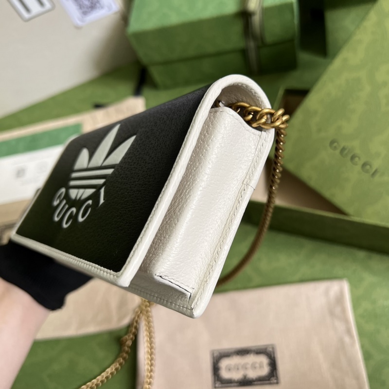 원래 녹색 상자 포장 그대로 GG 공동 컬렉션 광고의 일환으로 1955 시리즈 체인백은 트레포일 프린트로 장식되어 있습니다. 콜라보레이션 시리즈는 두 브랜드의 유서 깊은 컬렉션의 요소를 결합합니다. 세 가지 라인의 조합은 브랜드의 역사와 상징적인 디자인 언어를 계승합니다. 크리에이티브 디렉터 알레산드로 미켈레는 1980년대와 1990년대의 추억에서 영감을 얻어 향수를 불러일으키는 스타일과 현대적인 기질을 결합한 뛰어난 시리즈를 만들었습니다. 모델 번호: 621892. 크기: 19(가로) x 10(세로) x 4cm. 색상: 컬러 블록이 적용된 풀 가죽/아디다스 콜라보레이션 모델. 아이템 번호: XP9618800