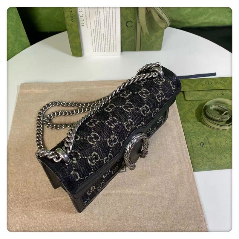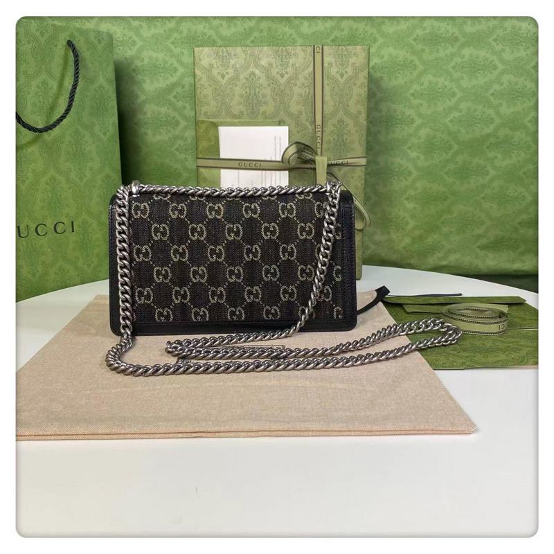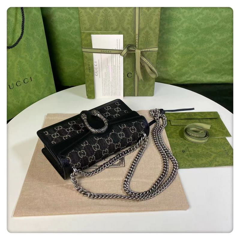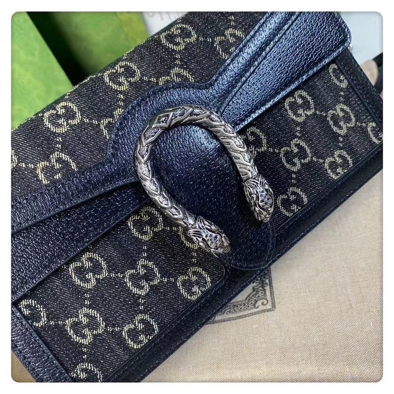 상단 모델 번호: 499623g 데님 소재에 브라운 가죽 크기: 폭 25 x 높이 13.5 x 폭 7 배송 품번: FL9618970
