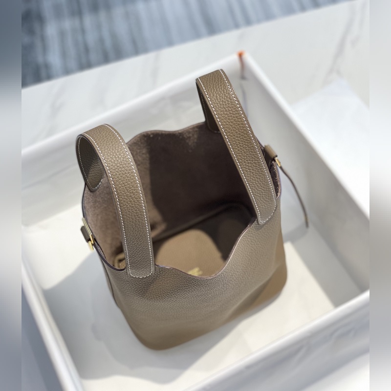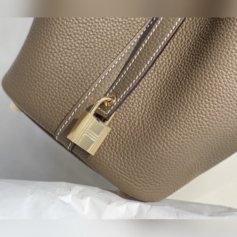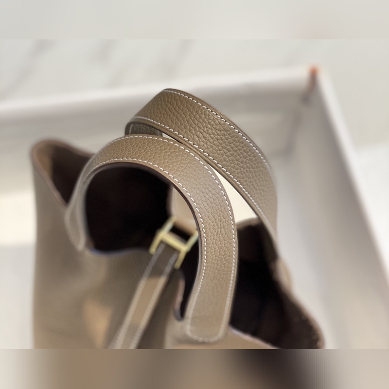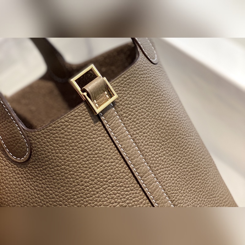 에르메스 핸드백 야채 바구니 풀 시리즈 - & 엘리펀트 그레이 · 소가죽 · 오버록 스티치 · 금 단추