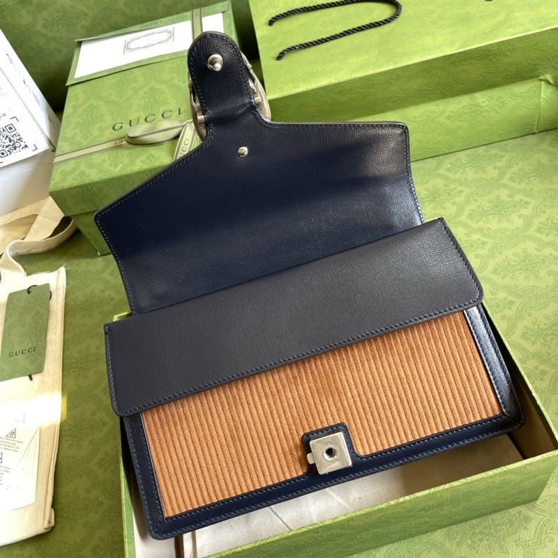 풀 오리지널 그린 박스 패키지 시리즈는 가장 인기 있는 핸드백 시리즈 중 하나입니다. 바커스 시리즈는 브랜드의 디자인 유산을 독특한 관점에서 해석합니다. 이 숄더백은 브랜드의 크리에이티브 디렉터인 알레산드로 미켈레가 2015년 가을/겨울 컬렉션을 위해 제작한 제품입니다. 그 이후로 이 모델은 매 시즌마다 새로운 상징적인 액세서리로 업데이트되어 다양한 혁신적인 색상과 소재를 결합하여 새로운 컬렉션에 풍부한 느낌을 더해줍니다. 이 숄더백은 세련된 핑크색 코듀로이 소재에 파란색 가죽 파이핑이 사용되었습니다. 품번: 400249. 크기: 28*17*9cm. 색상: 브라운 코듀로이/블루 가죽. 아이템 번호: XP96181200