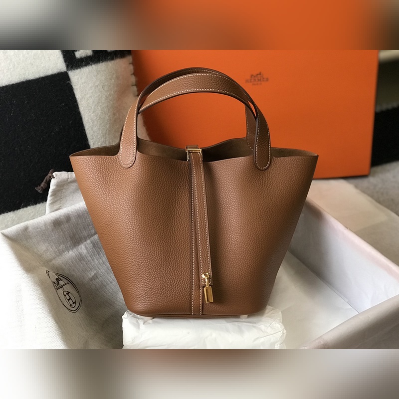 에르메스 핸드백 야채 바구니 풀 시리즈 - & 황금색 갈색 · 소