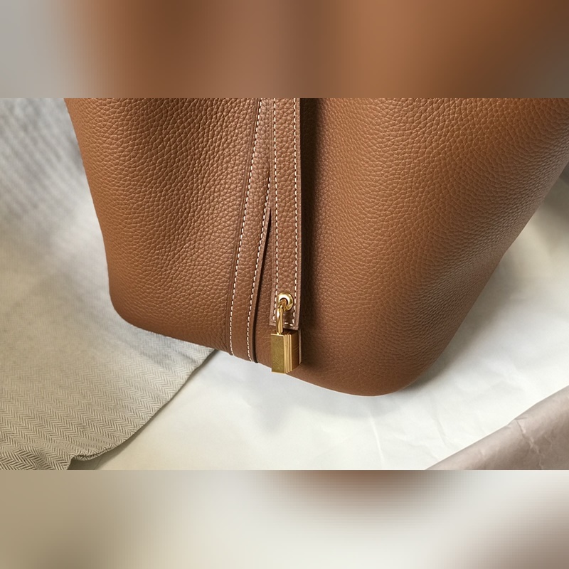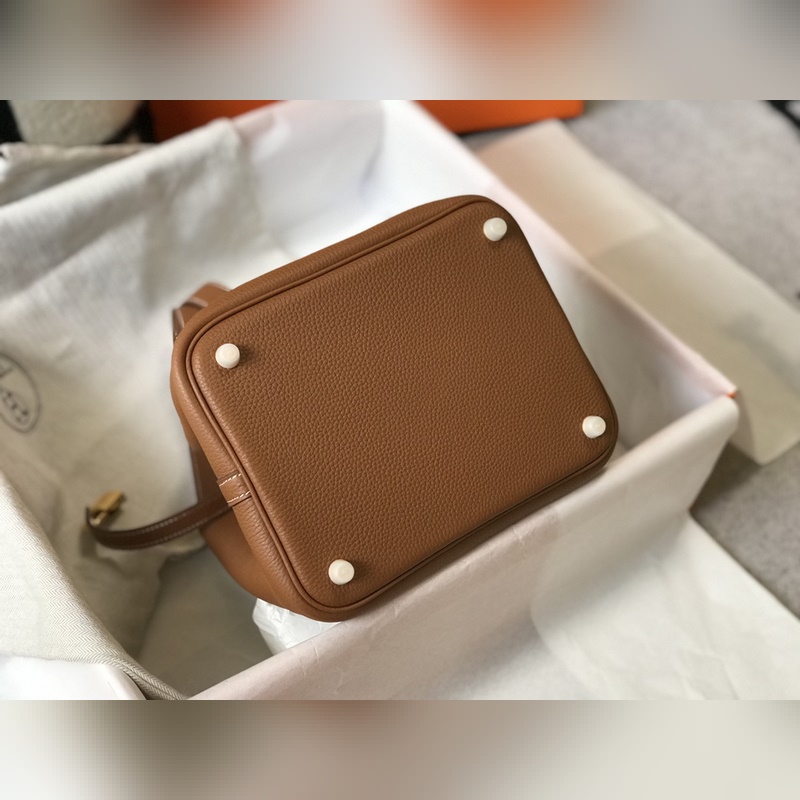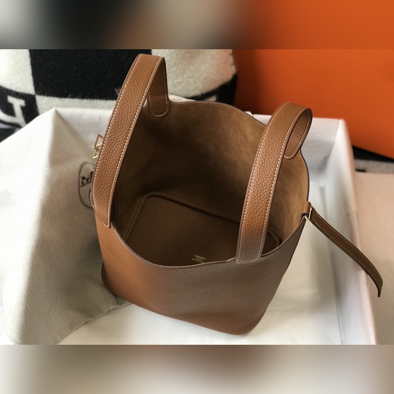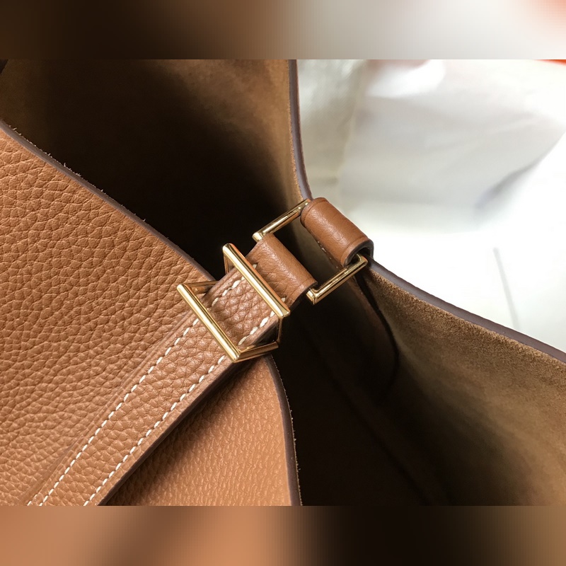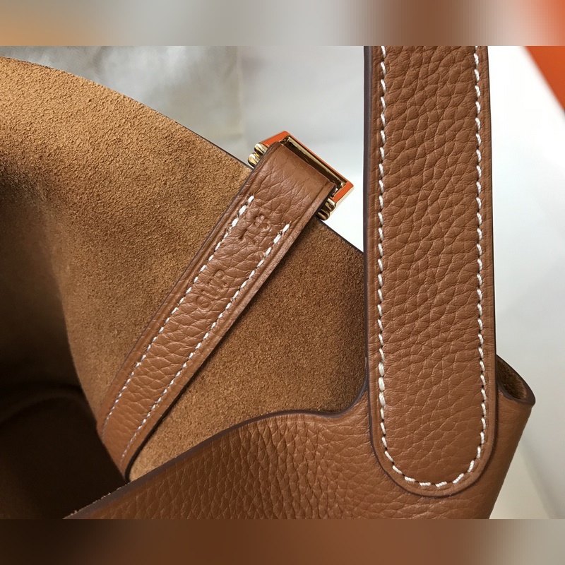 에르메스 핸드백 야채 바구니 풀 시리즈 - & 황금색 갈색 · 소가죽 · 오버록 스티치 · 금색 버클