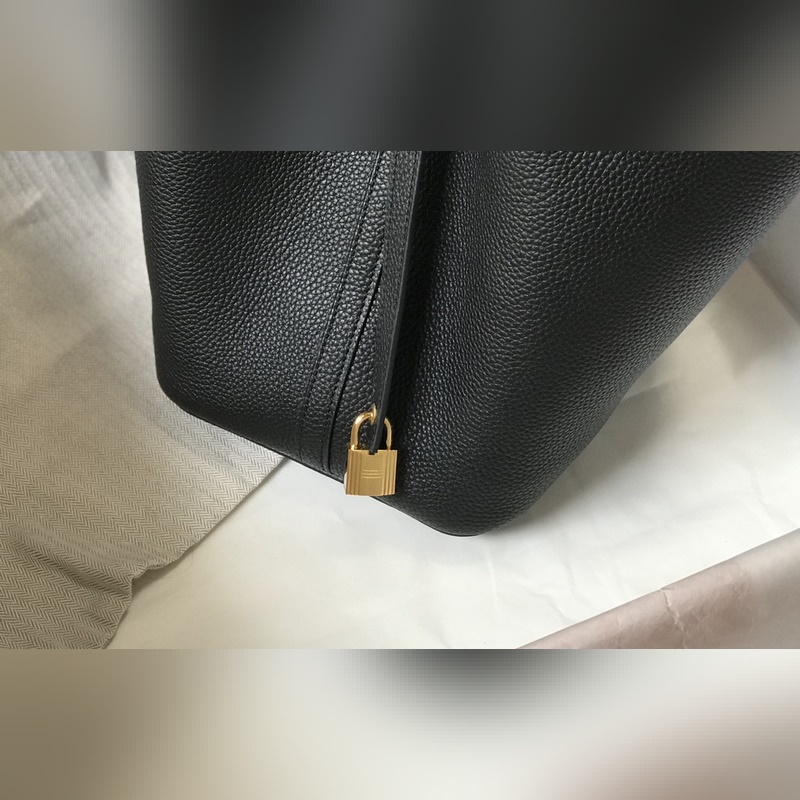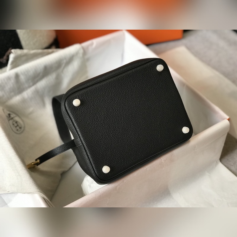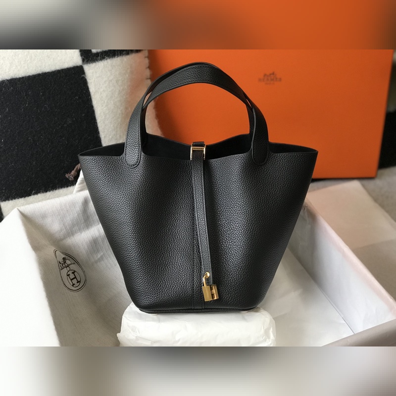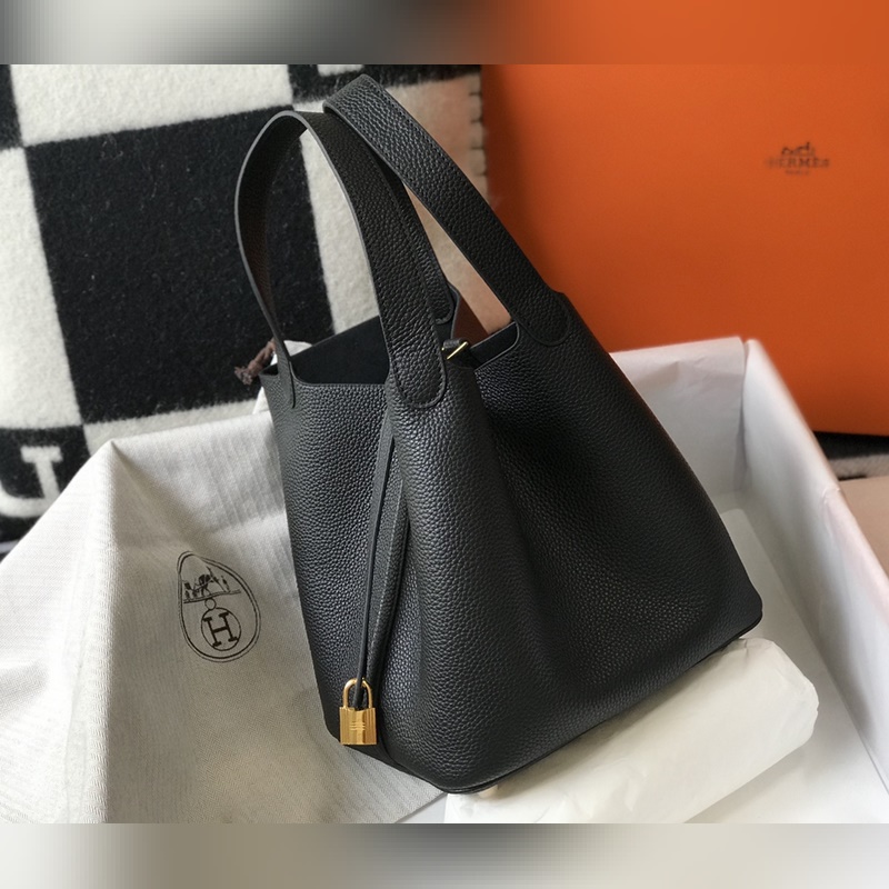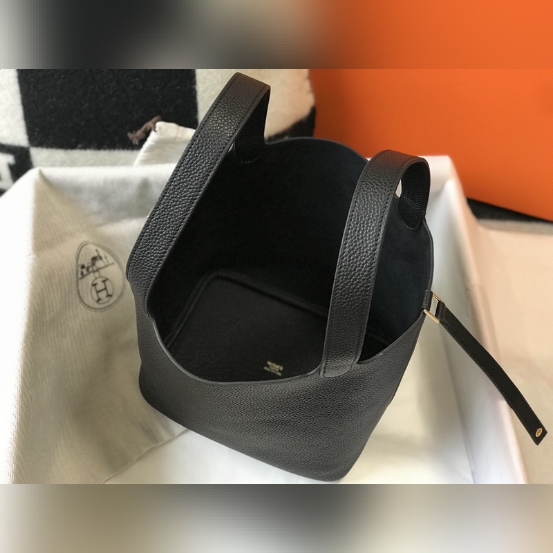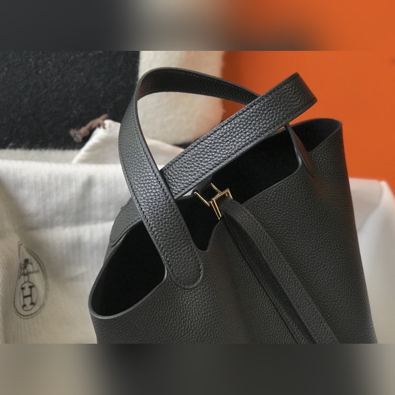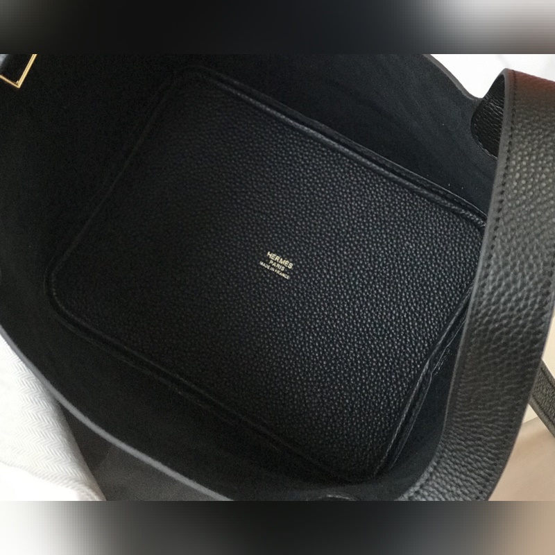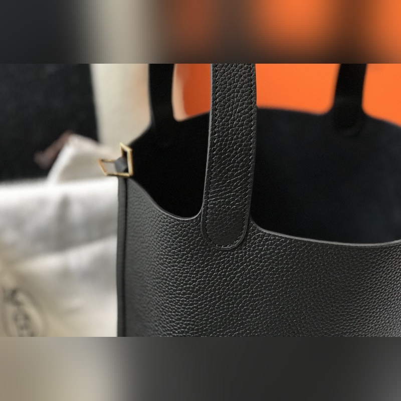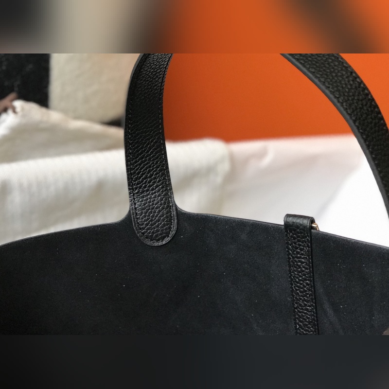 에르메스 핸드백 야채 바구니 풀 시리즈 - & 검은색 · 소가죽 · 오버록 스티치 · 금색 단추
