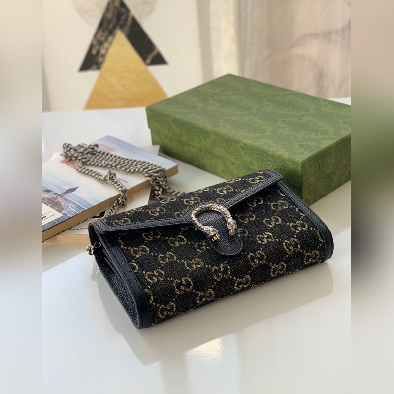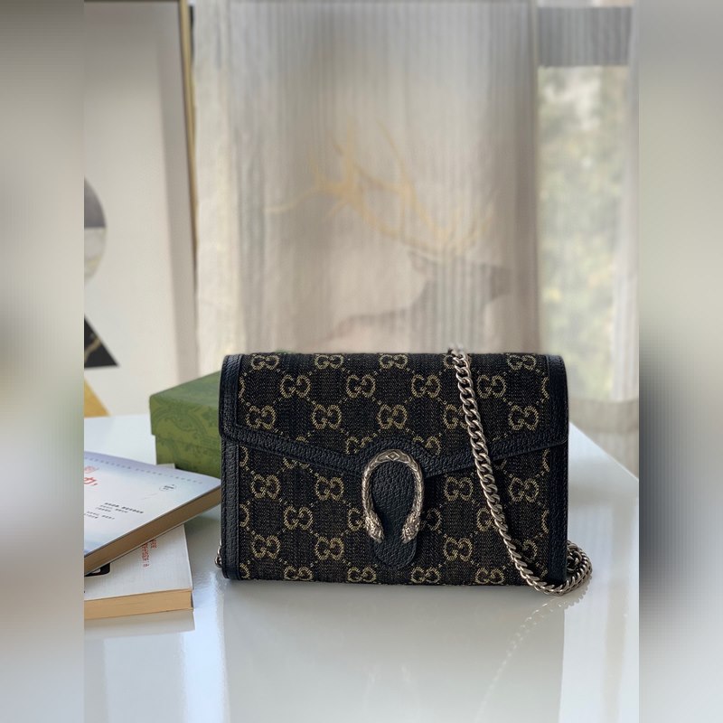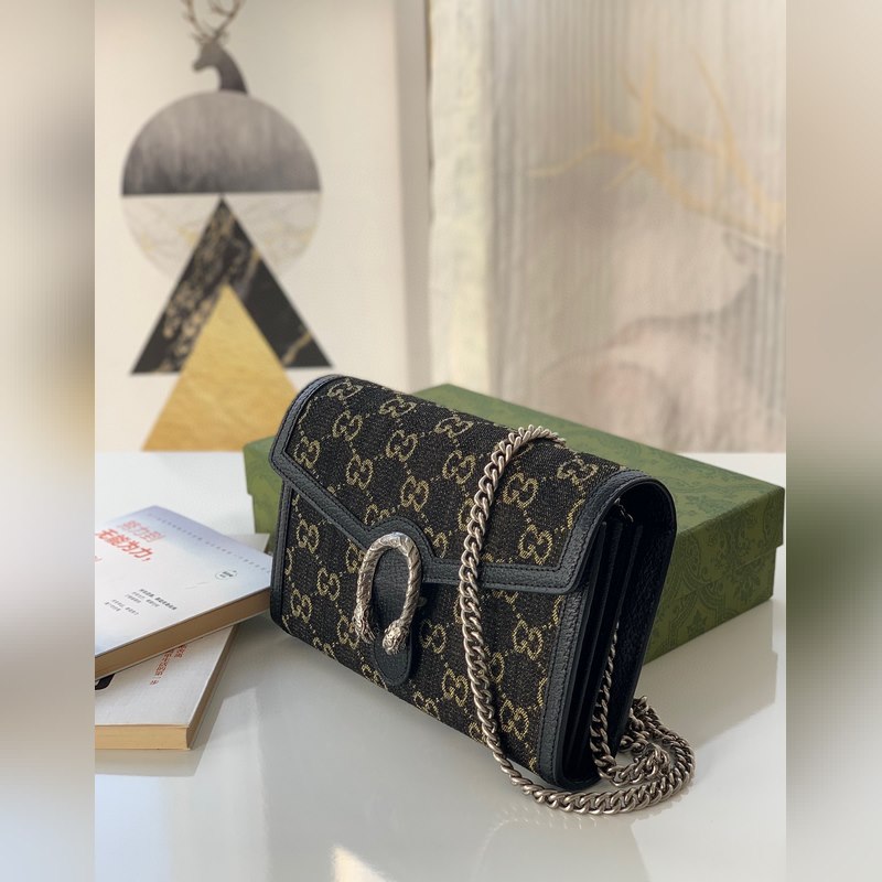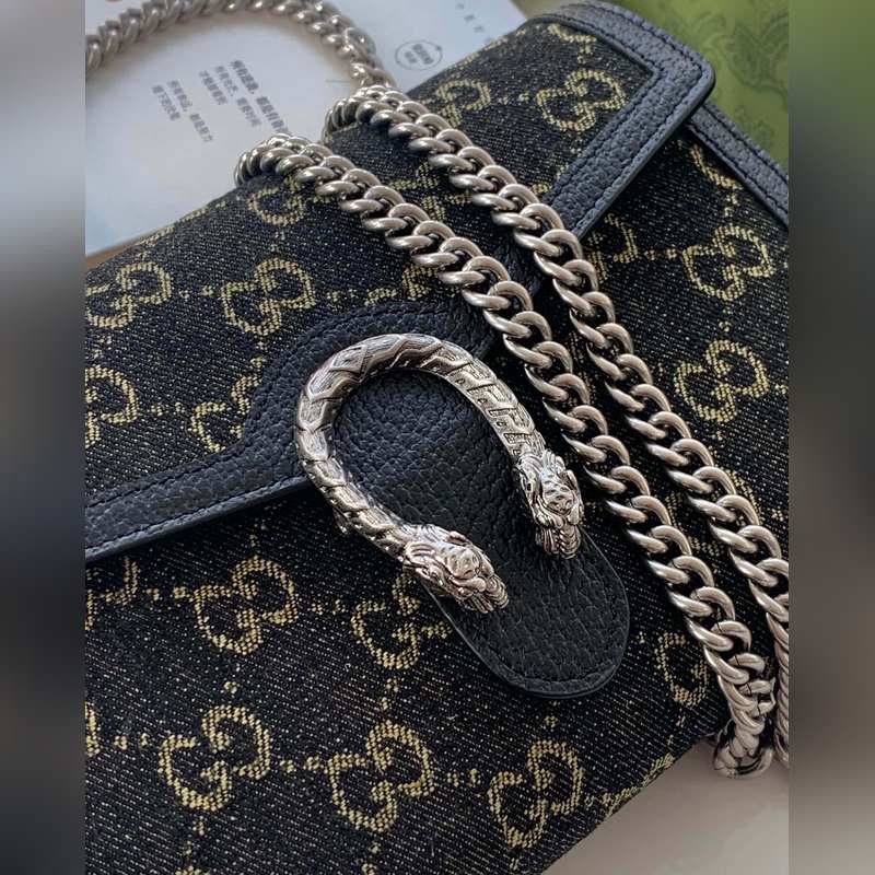 #블랙 데님 시리즈 체인 백 상징적인 더블 타이거 헤드 버클 모델 번호 401231 블랙 데님 크기 20X13X6~ 아이템 번호: HY9618820