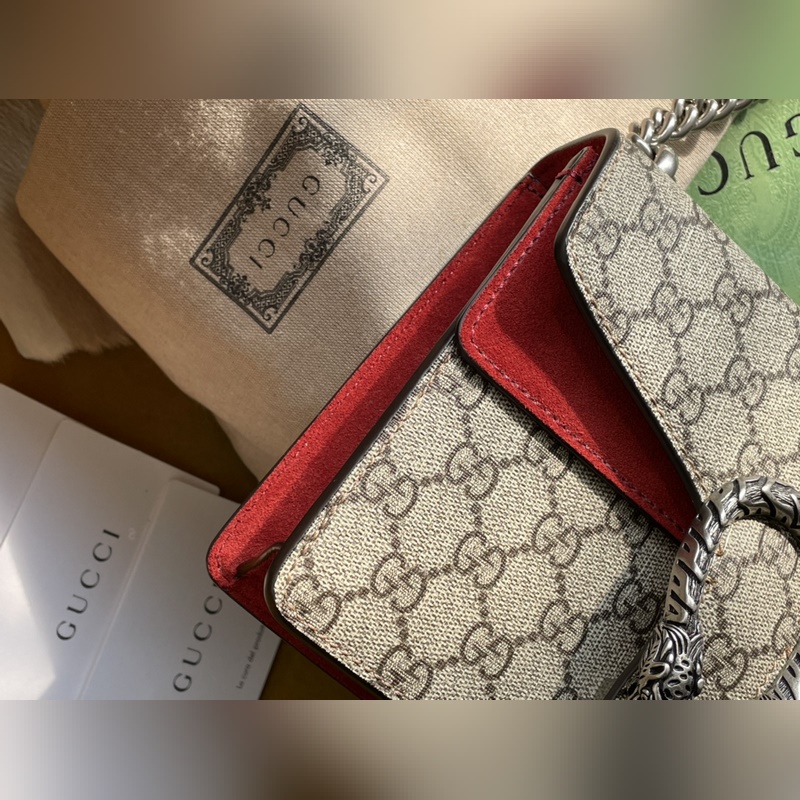 클래식 모델 번호: 421970 디오니소스 백 구조화된 미니 백. 고급 인조 가죽. 호랑이 머리 박힌 버클이 달린 꽃무늬. 슬라이딩 체인 백. 어깨에 메거나 손으로 들 수 있습니다. 다양한 운반 방법. 크기: 20/16/5cm [원 포장 상태] 아이템 번호: XZM96181000