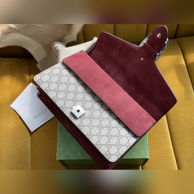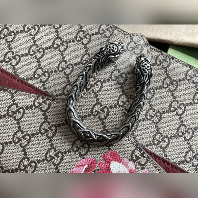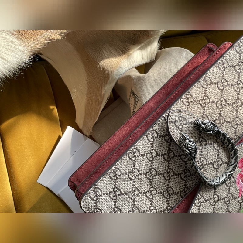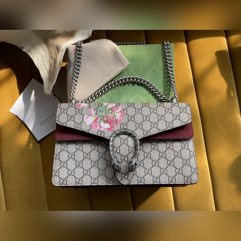 아이템 번호: 400249 바쿠스 백의 직조된 호랑이 머리 박차 버클이 구조적인 숄더백에 화려한 느낌을 더해줍니다. 슬라이딩 체인 백은 다양한 방법으로 착용할 수 있으며 숄더백과 핸드백으로 자유롭게 전환할 수 있습니다. 스웨이드 안감의 포켓과 고급 인조 가죽 안감. 크기: 28/18/9cm [원 포장 상태] 아이템 번호: XZM96181100
