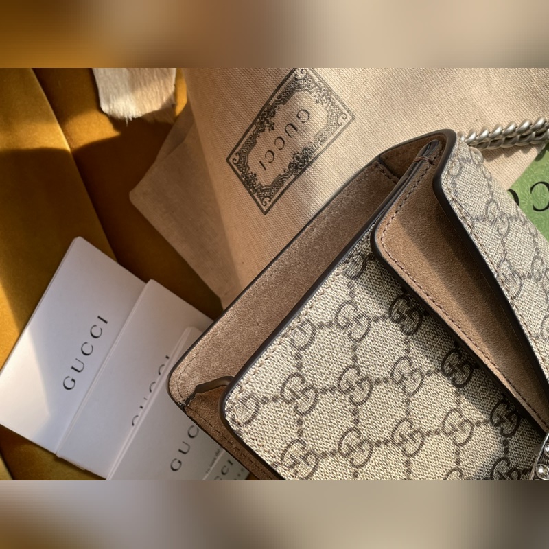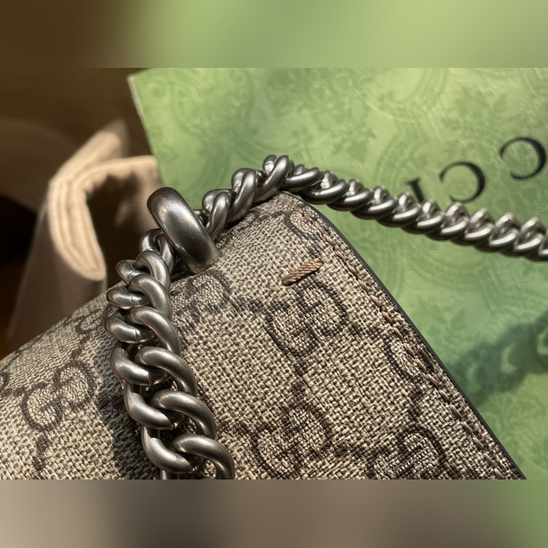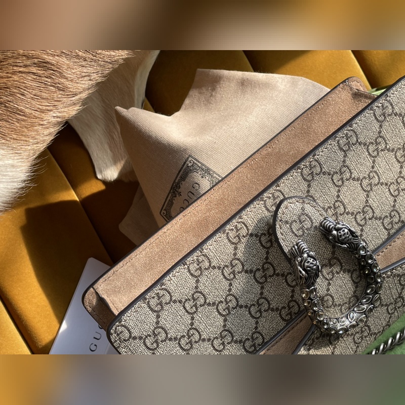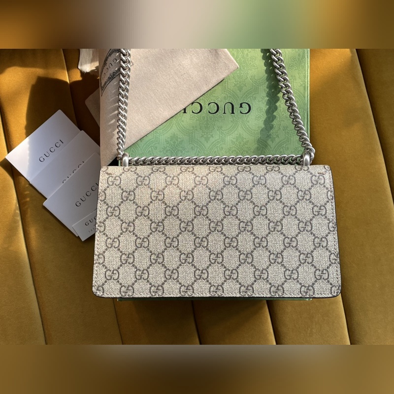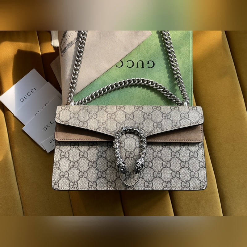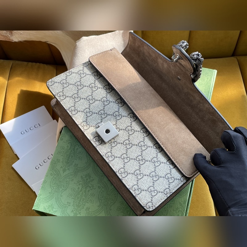 아이템 번호 499623 GG 패턴의 타이거 헤드 스퍼 버클이 달린 29A 시리즈의 작은 숄더백은 이 구조적인 숄더백에 화려함을 더해줍니다. 슬라이딩 체인 백은 다양한 방법으로 착용할 수 있으며 숄더백과 핸드백으로 자유롭게 전환할 수 있습니다. GG 프리미엄 인조 가죽 안감이 있는 스웨이드 안감 포켓. 크기: 25/13.5/7cm [원 포장 상태] 아이템 번호: XZM96181050