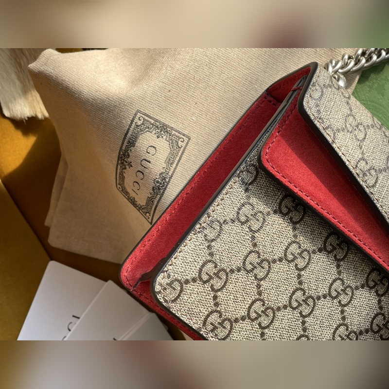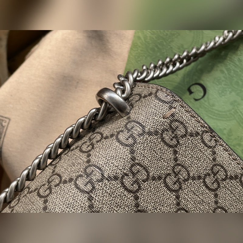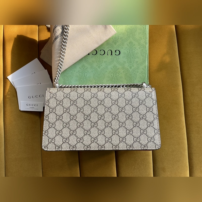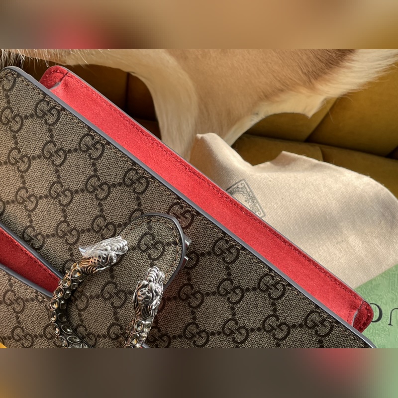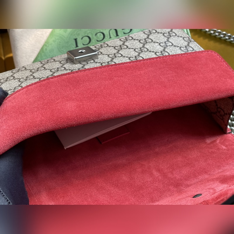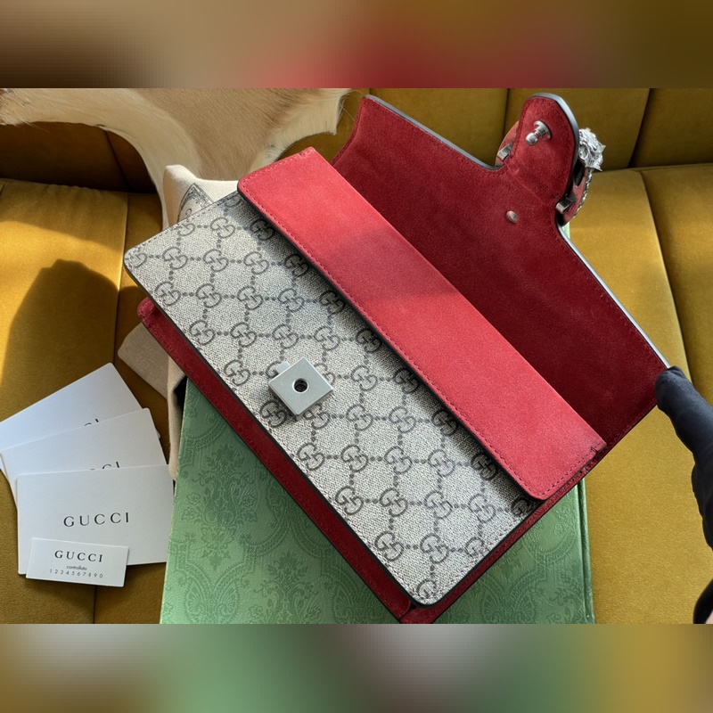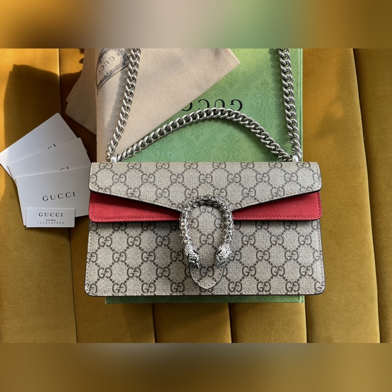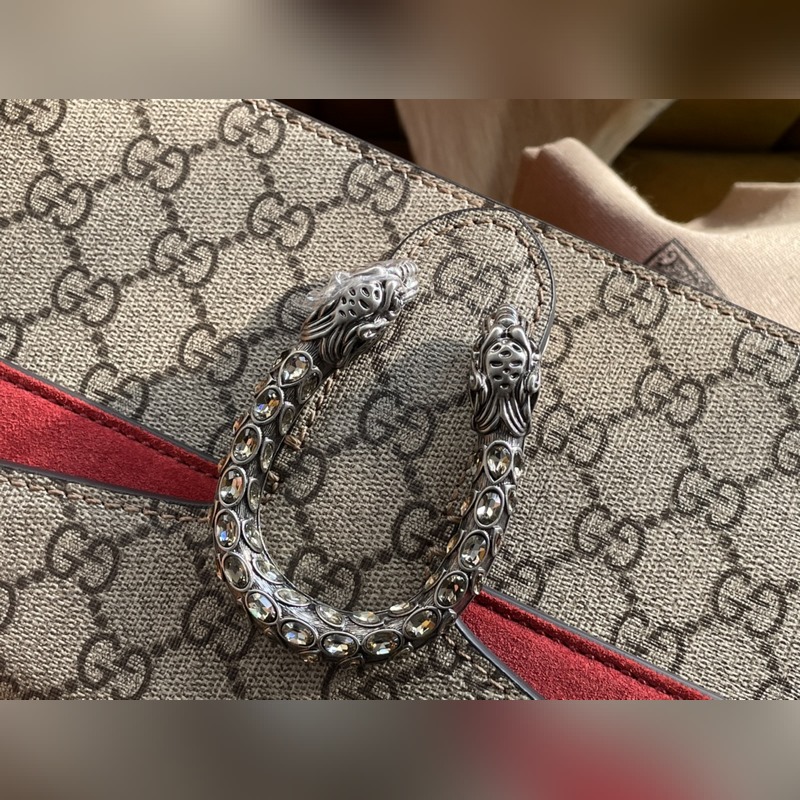 아이템 번호 499623 GG 패턴의 호랑이 머리 박차 버클이 달린 작은 숄더백은 이 구조적인 숄더백에 화려함을 더해줍니다. 여러 가지 운반 방법이 가능한 슬라이딩 체인 백으로 숄더백과 핸드백으로 자유롭게 전환할 수 있습니다. GG 고급 인조 가죽 안감이 있는 스웨이드 안감 주머니. 크기: 25/13.5/7cm [원 포장 상태] 아이템 번호: XZM96181050