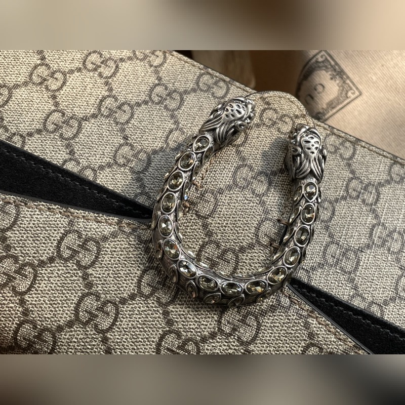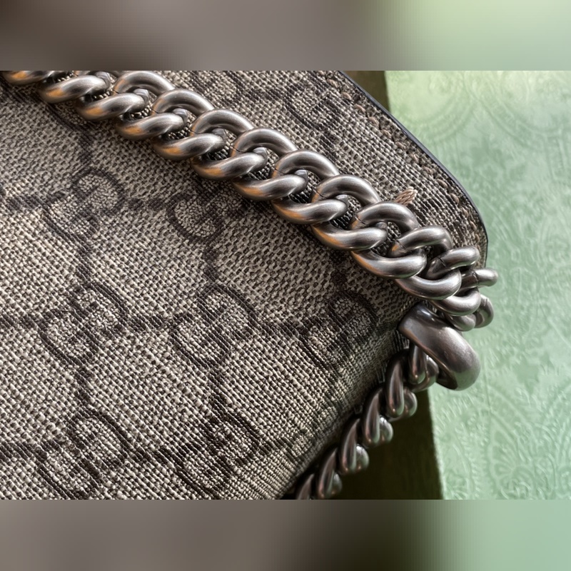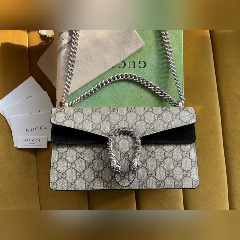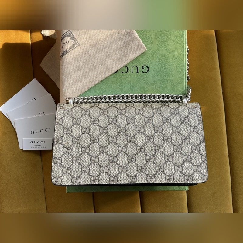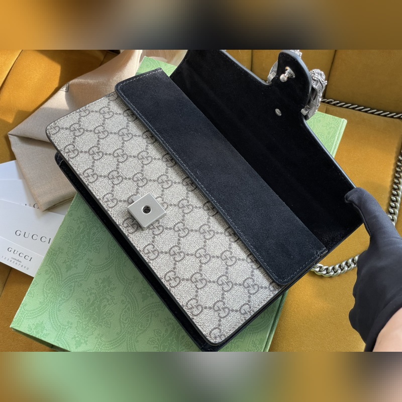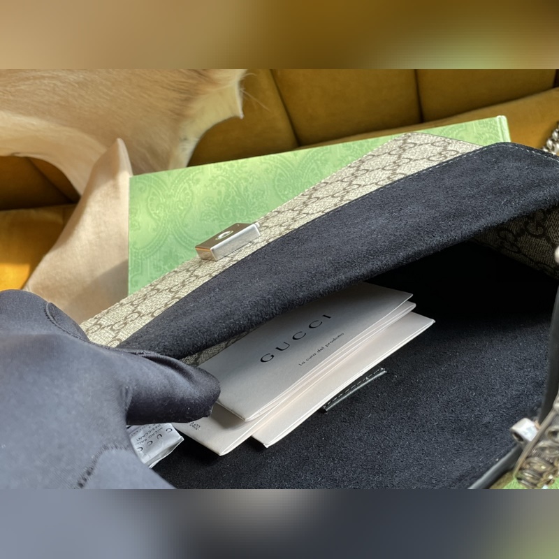 아이템 번호: 499623 이 시리즈의 작은 숄더백에 있는 GG 무늬의 호랑이 머리 박힌 버클이 구조적인 숄더백에 화려함을 더해줍니다. 슬라이딩 체인 백은 다양한 방법으로 착용할 수 있으며 숄더백과 핸드백으로 자유롭게 전환할 수 있습니다. GG 고급 인조 가죽 안감의 스웨이드 안감 포켓. 크기: 25/13.5/7cm [원 포장 상태] 아이템 번호: XZM96181050