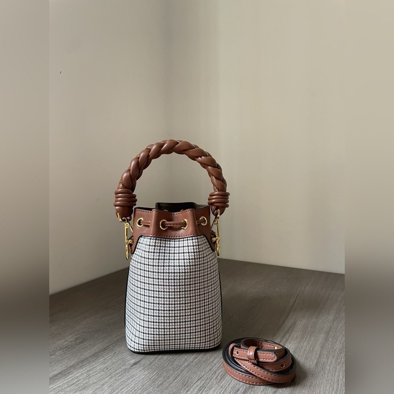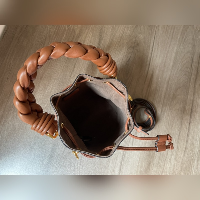 FENDI Mon Tresor 스몰 버킷 백 대조적인 FF 모티프가 양각으로 수놓아져 있고 같은 색상의 가죽으로 장식되어 있습니다. 빈티지 골드 코팅 금속 부속품. 길고 짧은 두 개의 탈착식 어깨 끈이 있어 한쪽 어깨에 메거나 몸에 걸칠 수 있습니다. 크기 12*18*10cm
