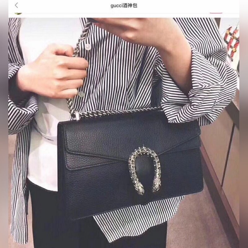 구찌 가방 400249 그리스 신화에 나오는 포도주의 신 디오니소스의 이야기에는 스와로브스키 크리스탈로 장식된 두 마리의 호랑이 머리가 특징입니다. 거친 체인은 분위기 있고 낭만적입니다. 크기 28/18/9cm 항목 번호: XZM96181200 XL96181040 FX9618700