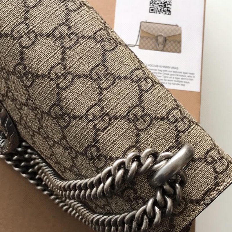 Gucci Bag 모델 번호: 400249 바쿠스 백에 있는 직조된 호랑이 머리 박차 버클이 구조적인 숄더백에 화려함을 더해줍니다. 슬라이딩 체인 백은 다양한 방법으로 착용할 수 있으며 숄더백과 핸드백으로 자유롭게 전환할 수 있습니다. GG Supreme 프리미엄 인조 가죽 안감의 스웨이드 안감 포켓 크기: 28/18/9cm 항목 번호: XZM96181100 XL9618970 FX9618680