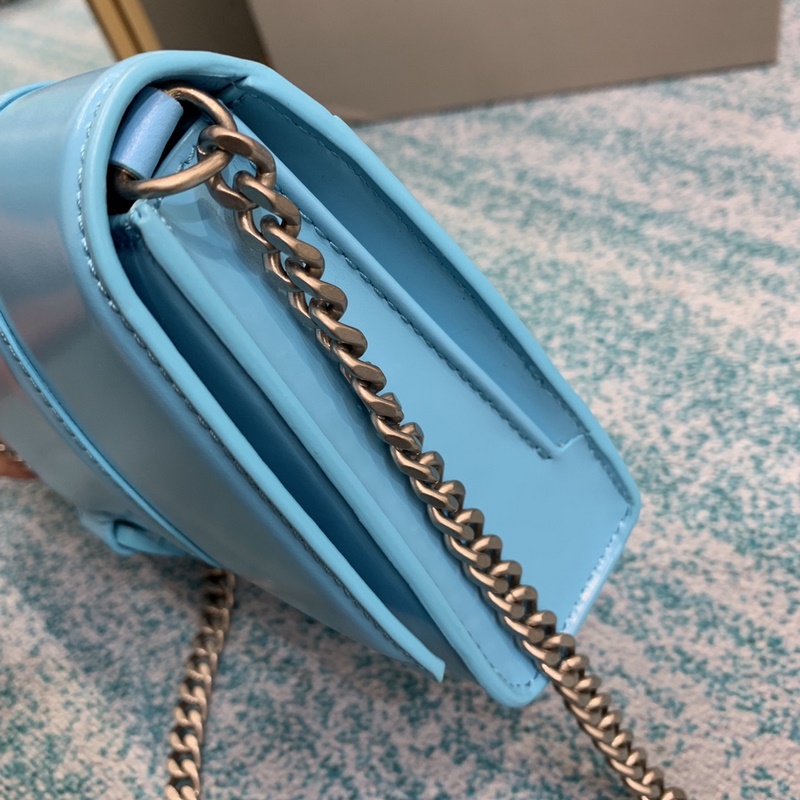 발렌시아가 체인 스트라이프 모래시계 가방 모래시계 체인 백 반짝이는 악어 무늬 가죽 곡선형 하단 가죽 어깨 패드가 있는 체인 숄더 스트랩(55cm) 블랙 매트 메탈 피팅(황동) 스터드 자석 잠금 B 로고 메탈 피팅 뒷주머니 1개 안쪽 패치 포켓 1개 세밀한 양가죽 안감 모델 번호: 644973 크기 23x14x5.8 [풀 패키지 포함] 상품 번호: SD96181080