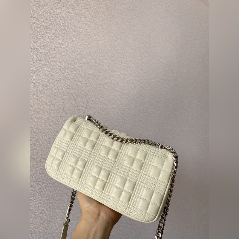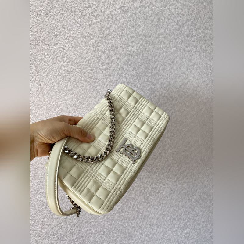 버버리의 최신 퀼팅 패션쇼 모델 롤라 - 롤라 백 이탈리아산 양가죽으로 만들어졌으며 토마스 버버리*의 독점 로고가 특징입니다. 독점 로고 패턴∩이 있는 반짝이는 체인 숄더 스트랩으로 어깨에 메거나 대각선으로 착용할 수 있습니다. 23 x 6 x 13cm 아이템 번호: YK96181130