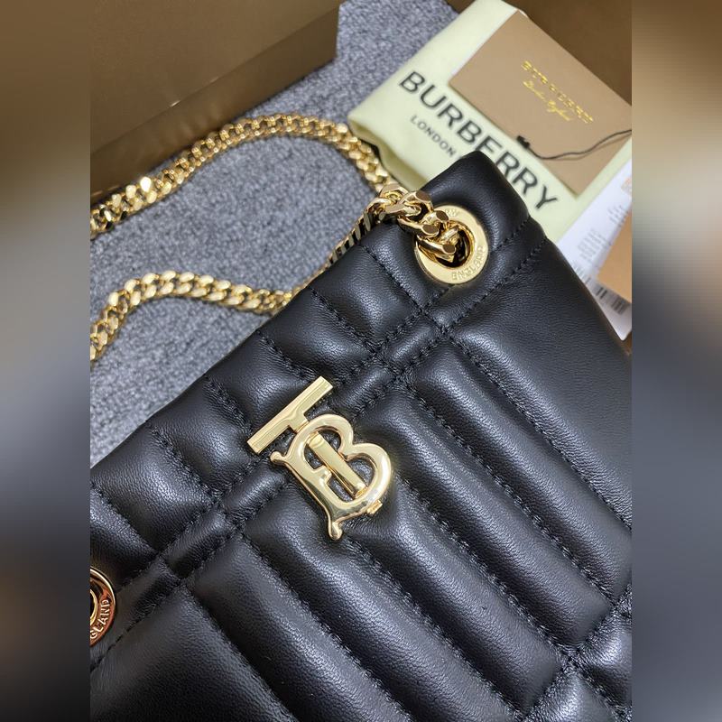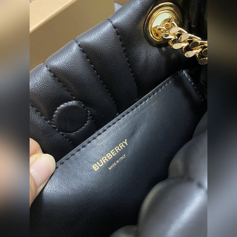버버리의 부드럽고 세련된 퀼팅 패션쇼 모델 롤라 ? ??包 이탈리아산 양가죽으로 만들어졌으며 특별한 로고가 특징입니다. 반짝이는 체인 숄더 스트랩을 어깨에 걸치거나 어깨에 메고 다닐 수 있습니다. 20 x 9 x 0.5cm 아이템 번호: YK96181150